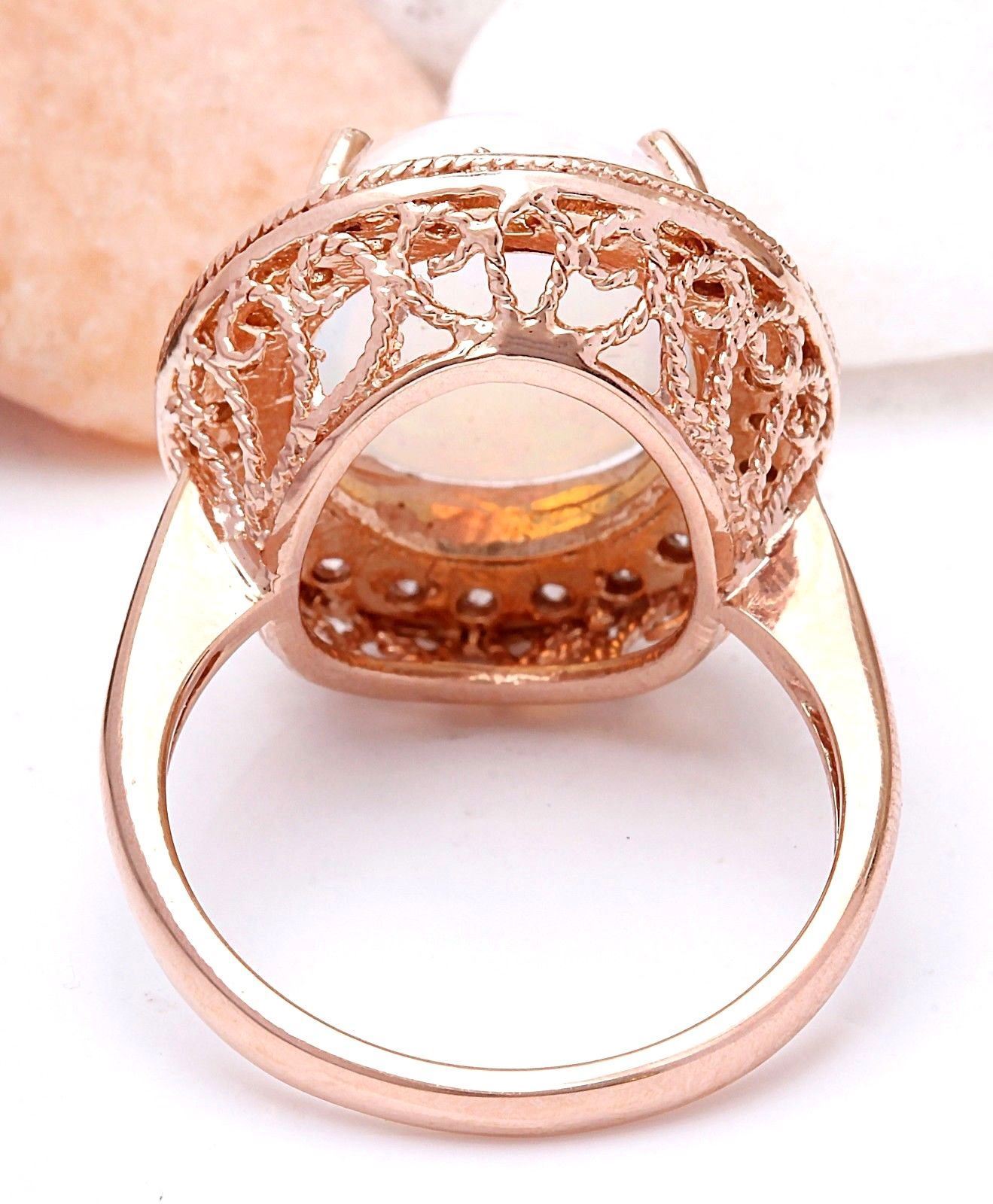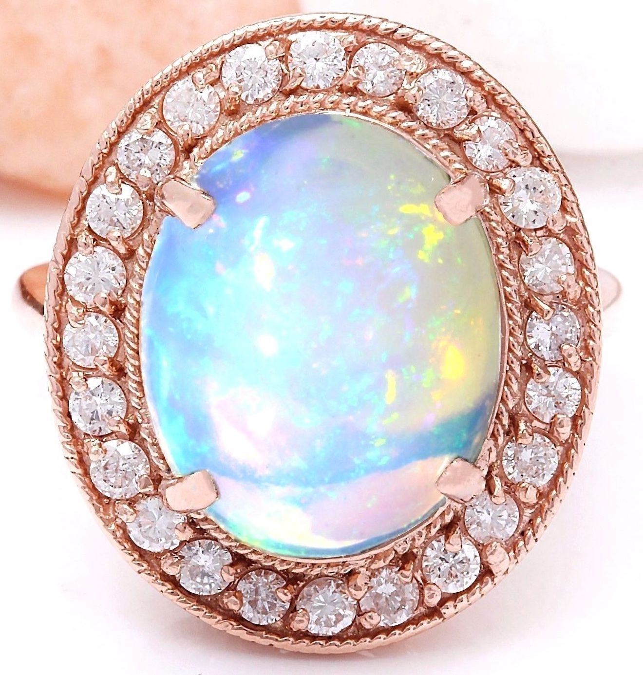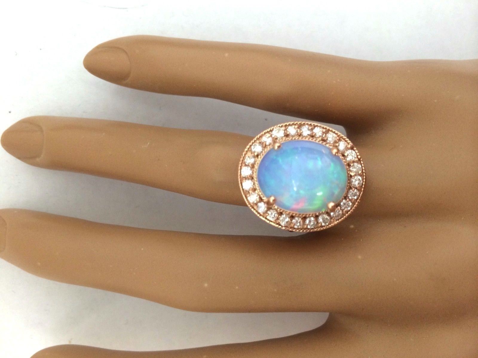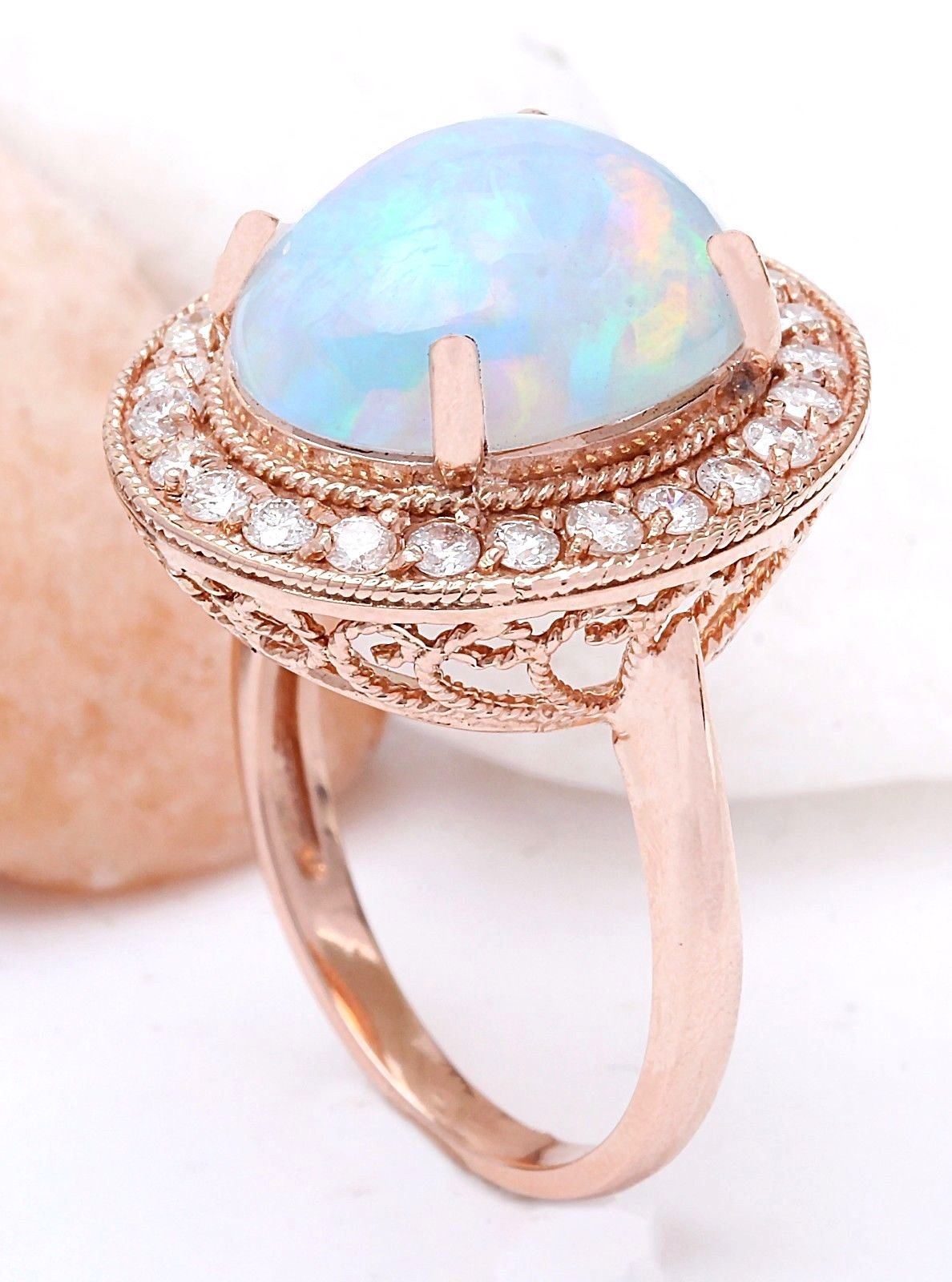 5.30 Carat Natural Opal 18K Solid Rose Gold Diamond Ring
