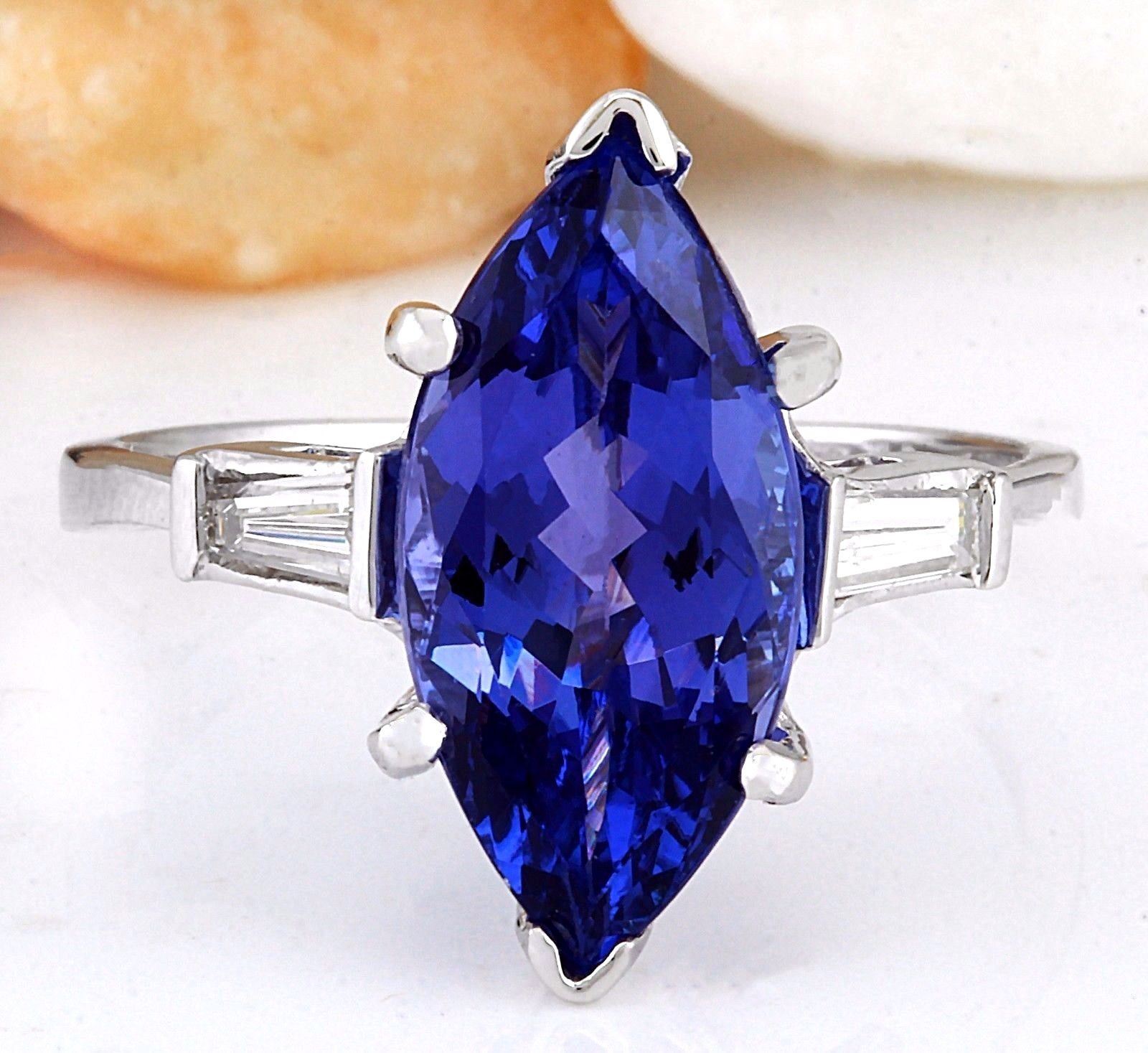 5.30 Carat Natural Tanzanite 14K Solid White Gold Diamond Ring