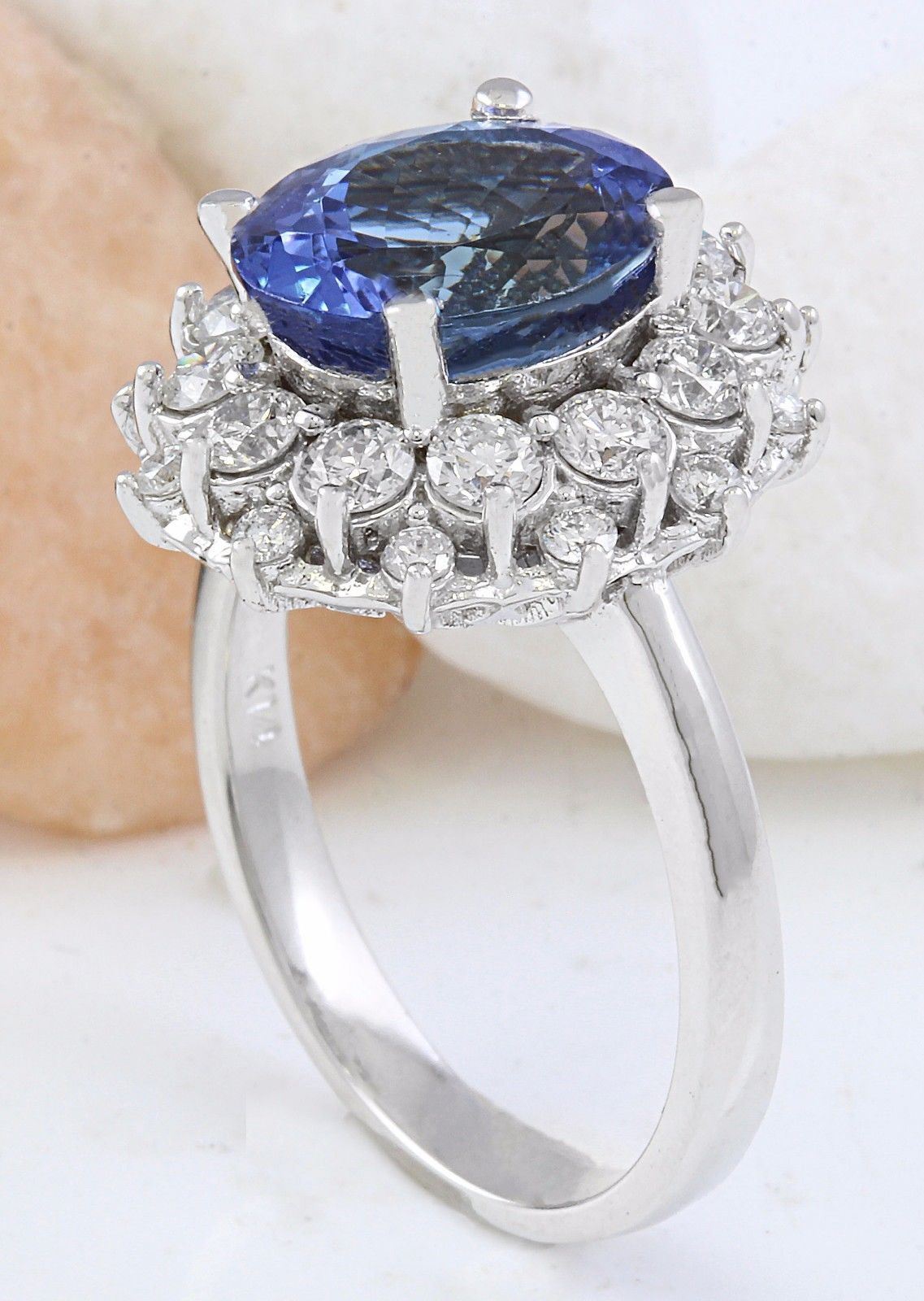 5.31 Carat Natural Tanzanite 14K Solid White Gold Diamond Ring