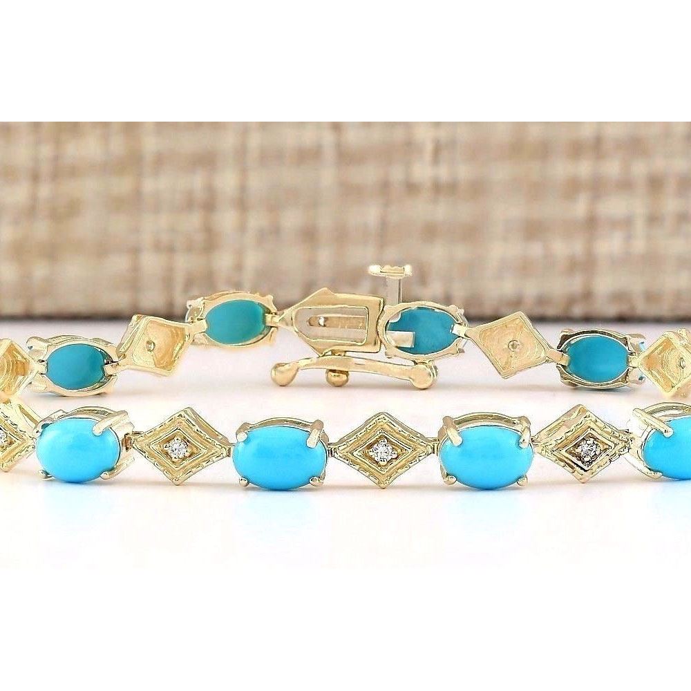 5.31 CTW Natural Turquoise And Diamond Bracelet In 14k Yellow Gold