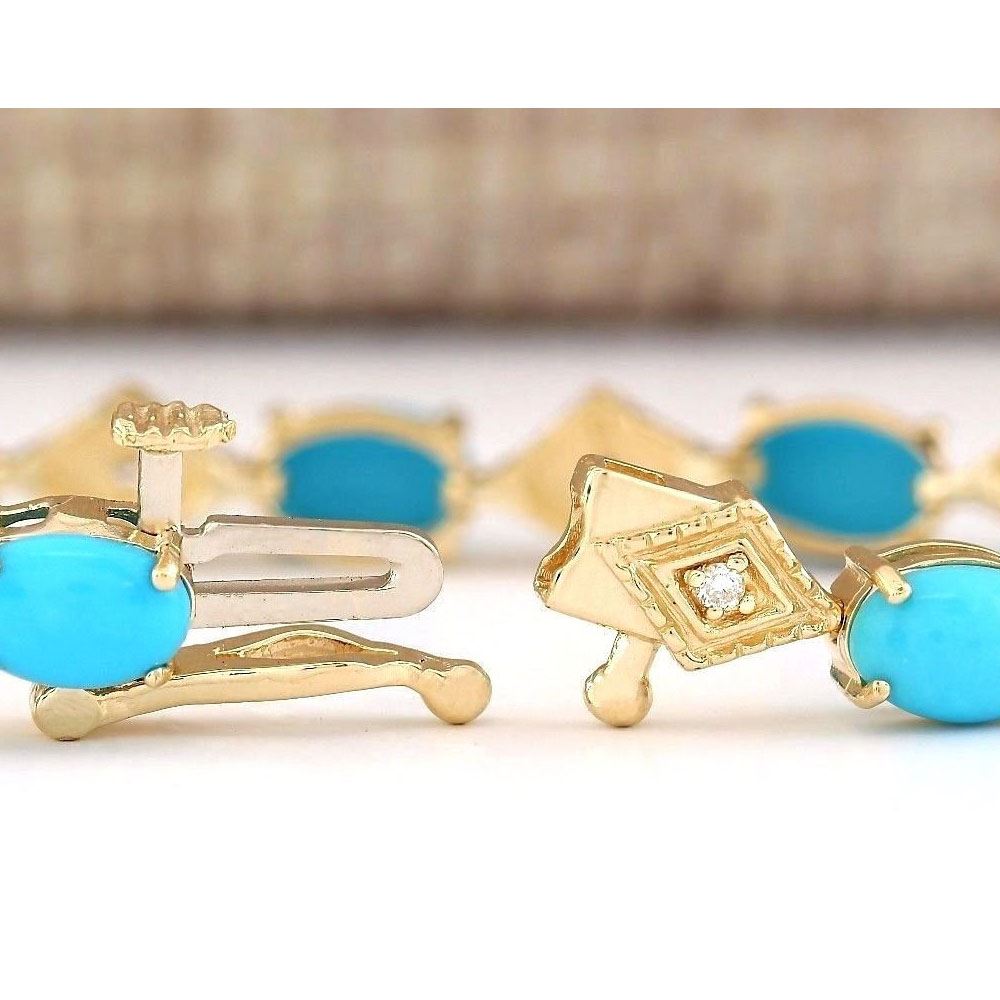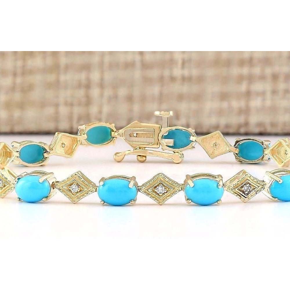 5.31 CTW Natural Turquoise And Diamond Bracelet In 18K Yellow Gold