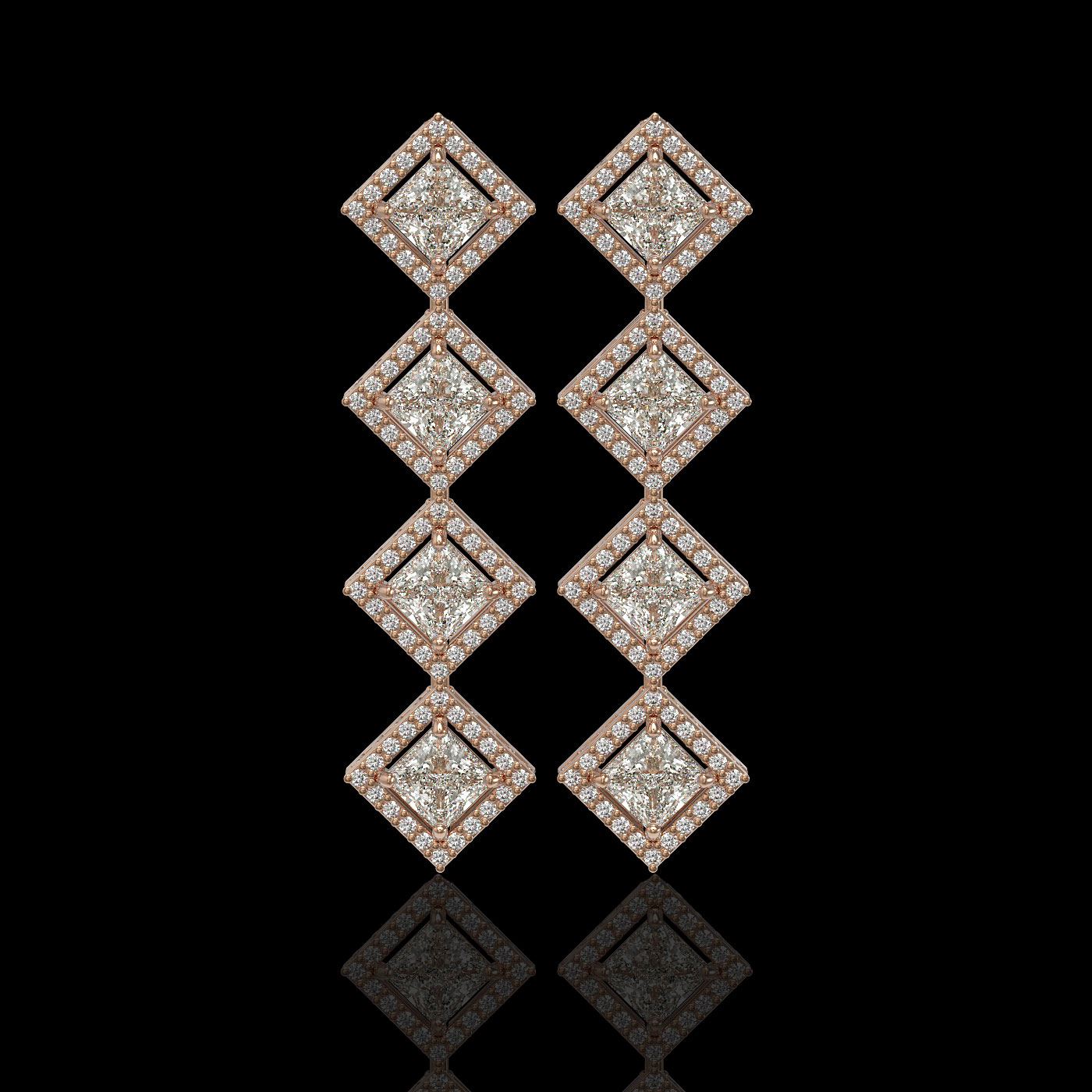 REF-978N4Y -42801 ---- 5.31 CTW Princess Cut Diamond Designer Earrings 18K Rose Gold ---- Luxury Designer Brand Earring Appraised at $43,050 Certificate Number US42801 18K Rose gold, Earring Size is 1 1/3 Inches Long, Earring measuring approx. 8 x 35 mm, weighing in total approx. 8 grams. Made in the USA and is stamped 18K, Main stone 4.03 carat total weight containing 8 pieces of I-J color with VS/SI quality Princess shape cut Diamond , Stone #2 1.28 carat total weight containing 160 pieces of G-H color with VS/SI quality Round shape cut Diamond