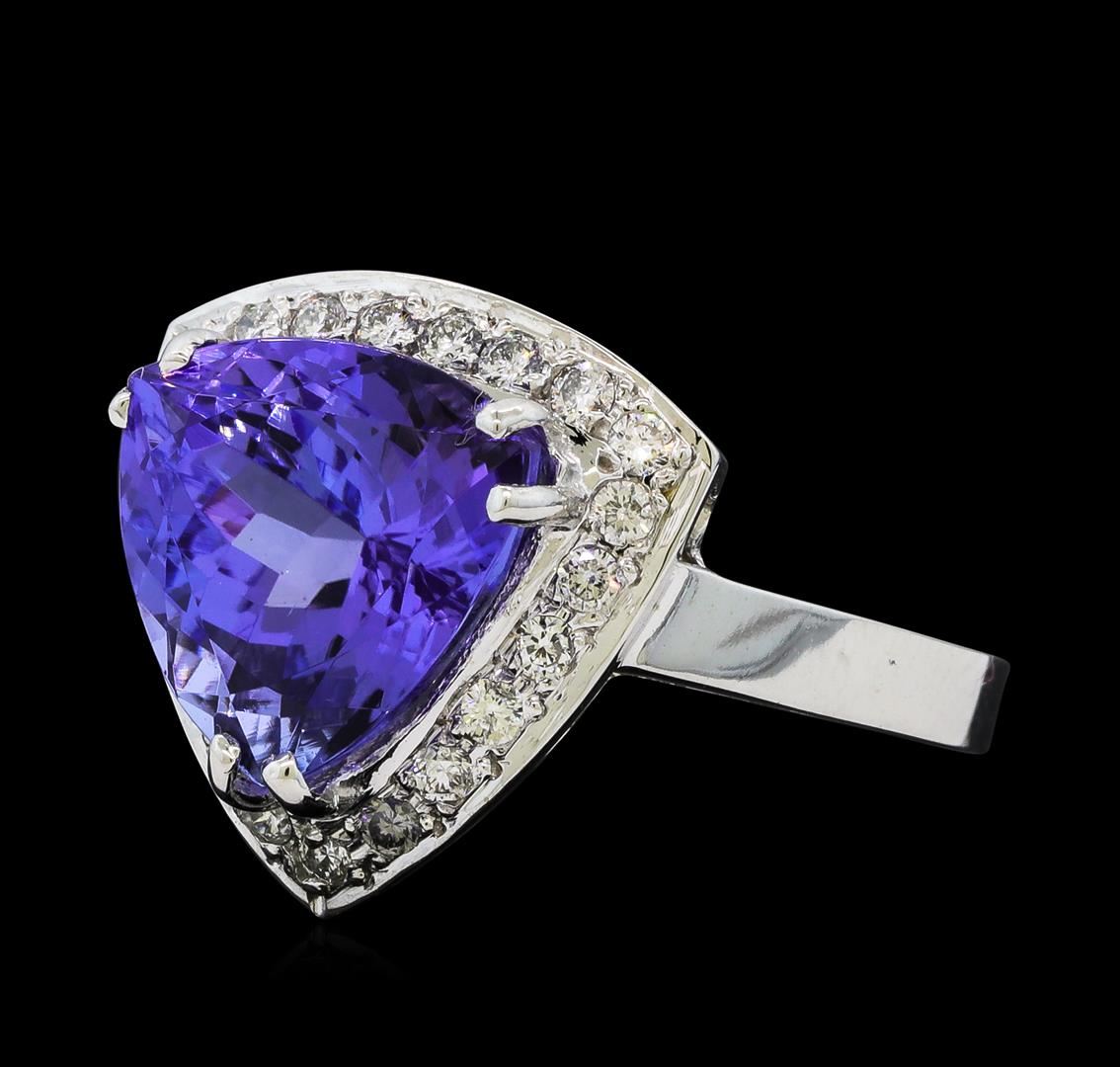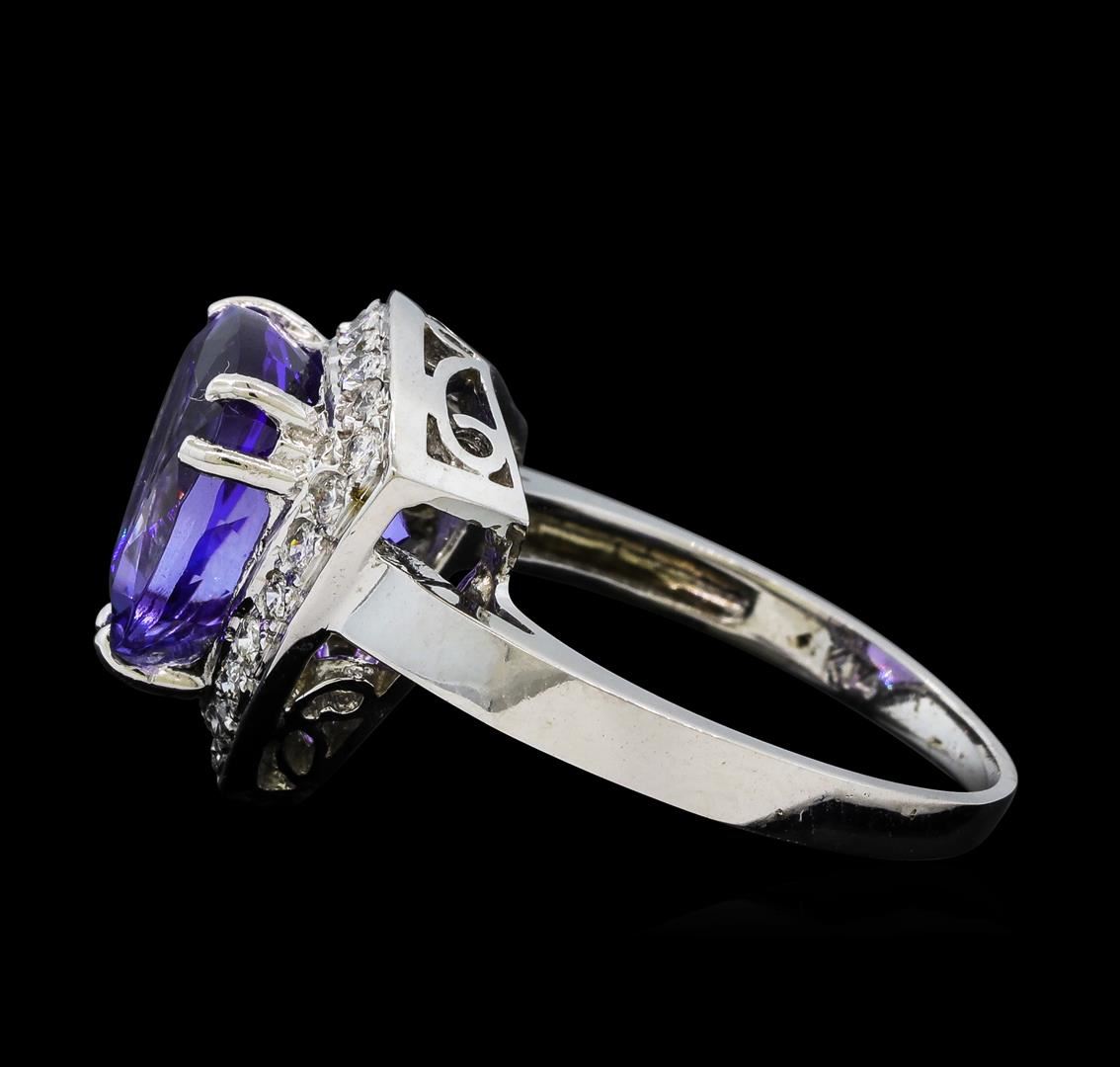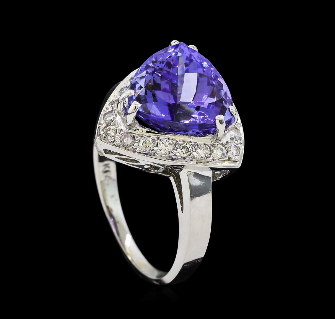 One Tanzanite and Diamond Ring including: 14KT White Gold weighing a total of 4.45 grams, Tanzanite weighing a total of 5.31ct, and 20 Diamonds weighing a total of 0.28ctw.