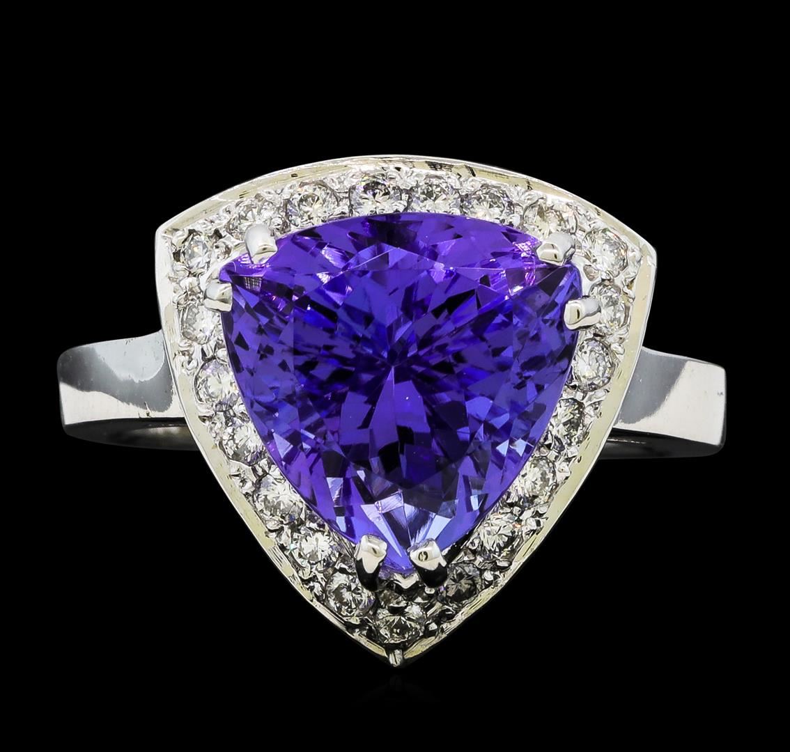 One Tanzanite and Diamond Ring including: 14KT White Gold weighing a total of 4.45 grams, Tanzanite weighing a total of 5.31ct, and 20 Diamonds weighing a total of 0.28ctw.