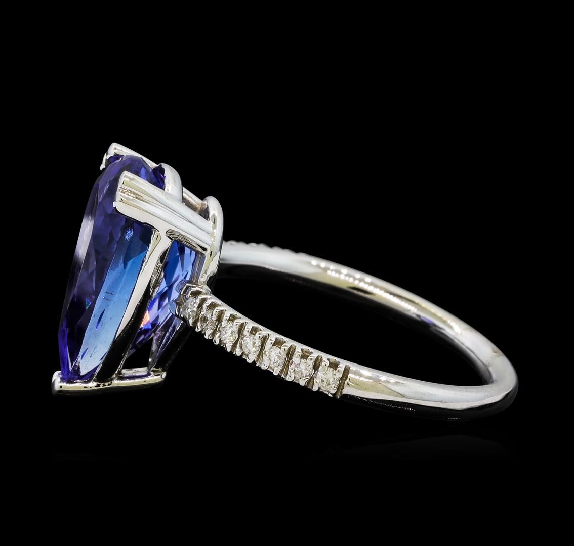 One Tanzanite and Diamond Ring including: 14KT White Gold weighing a total of 3.42 grams, Tanzanite weighing a total of 4.56ct, and 14 Diamonds weighing a total of 0.14ctw.