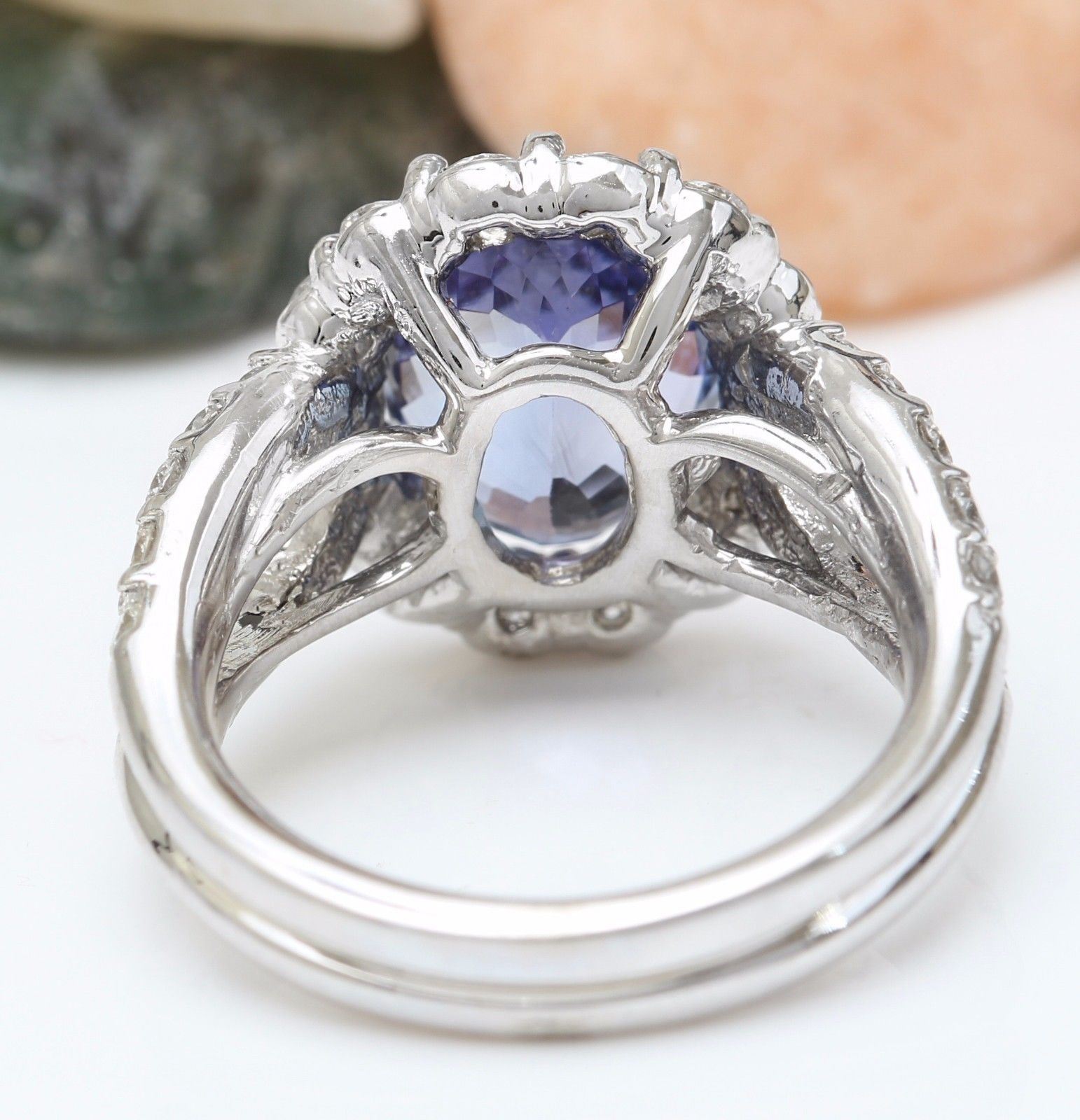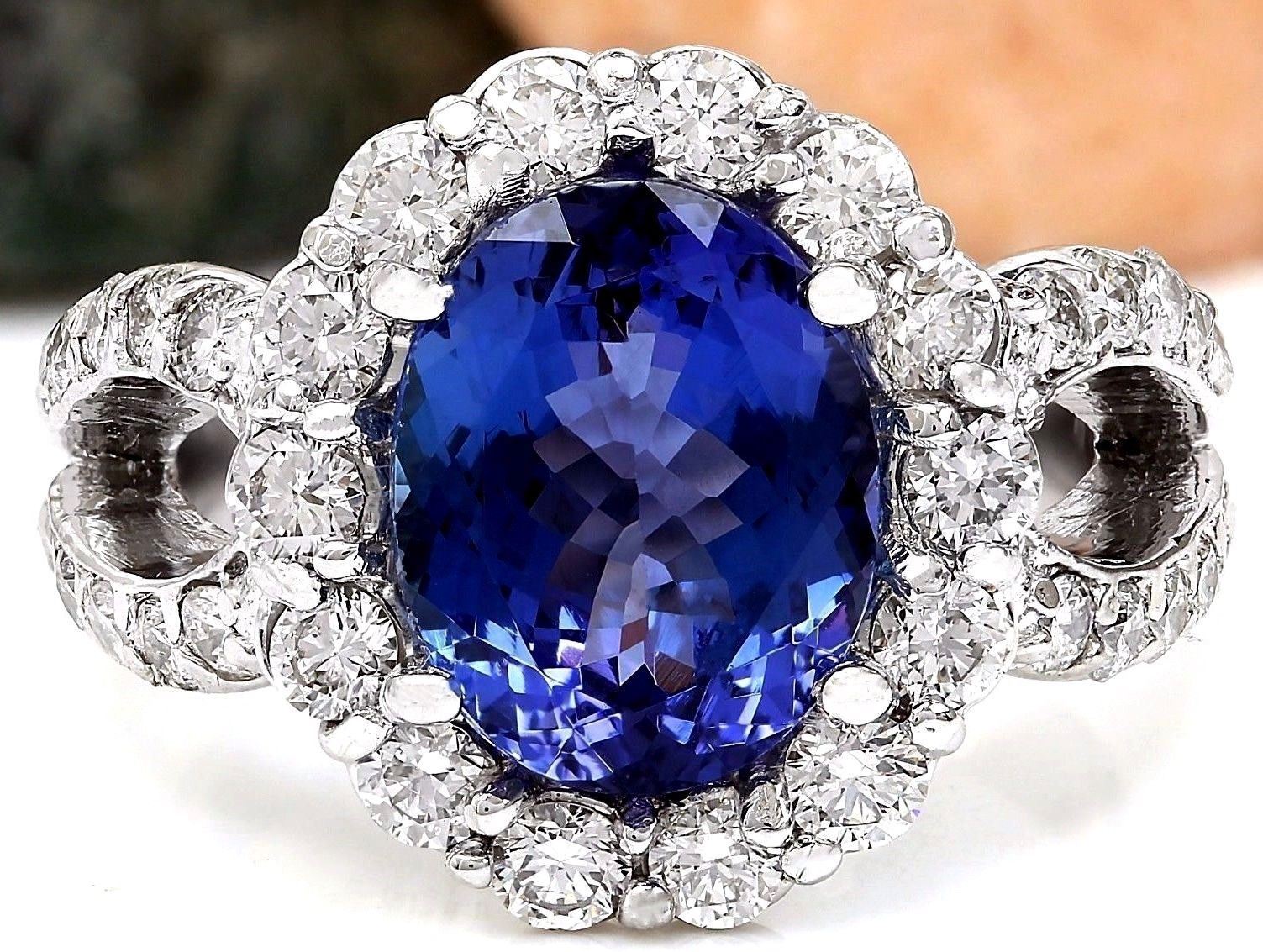 5.32 Carat Natural Tanzanite 18K Solid White Gold Diamond Ring