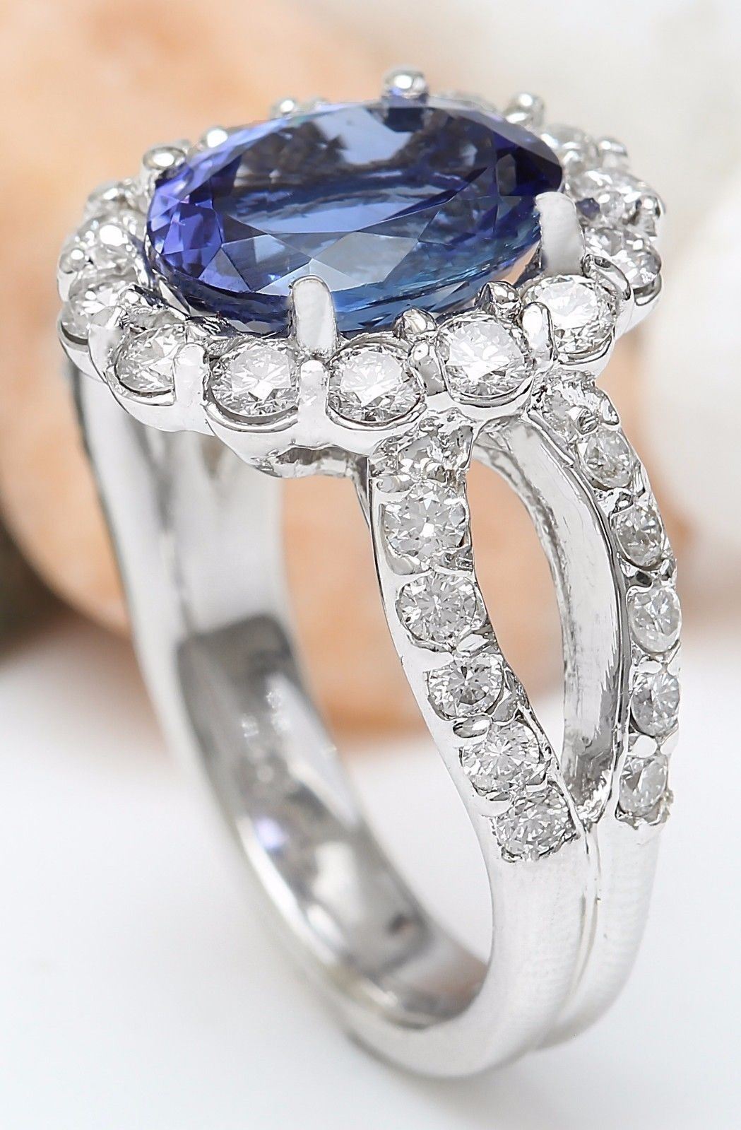 5.32 CTW Natural Tanzanite 18K Solid White Gold Diamond Ring