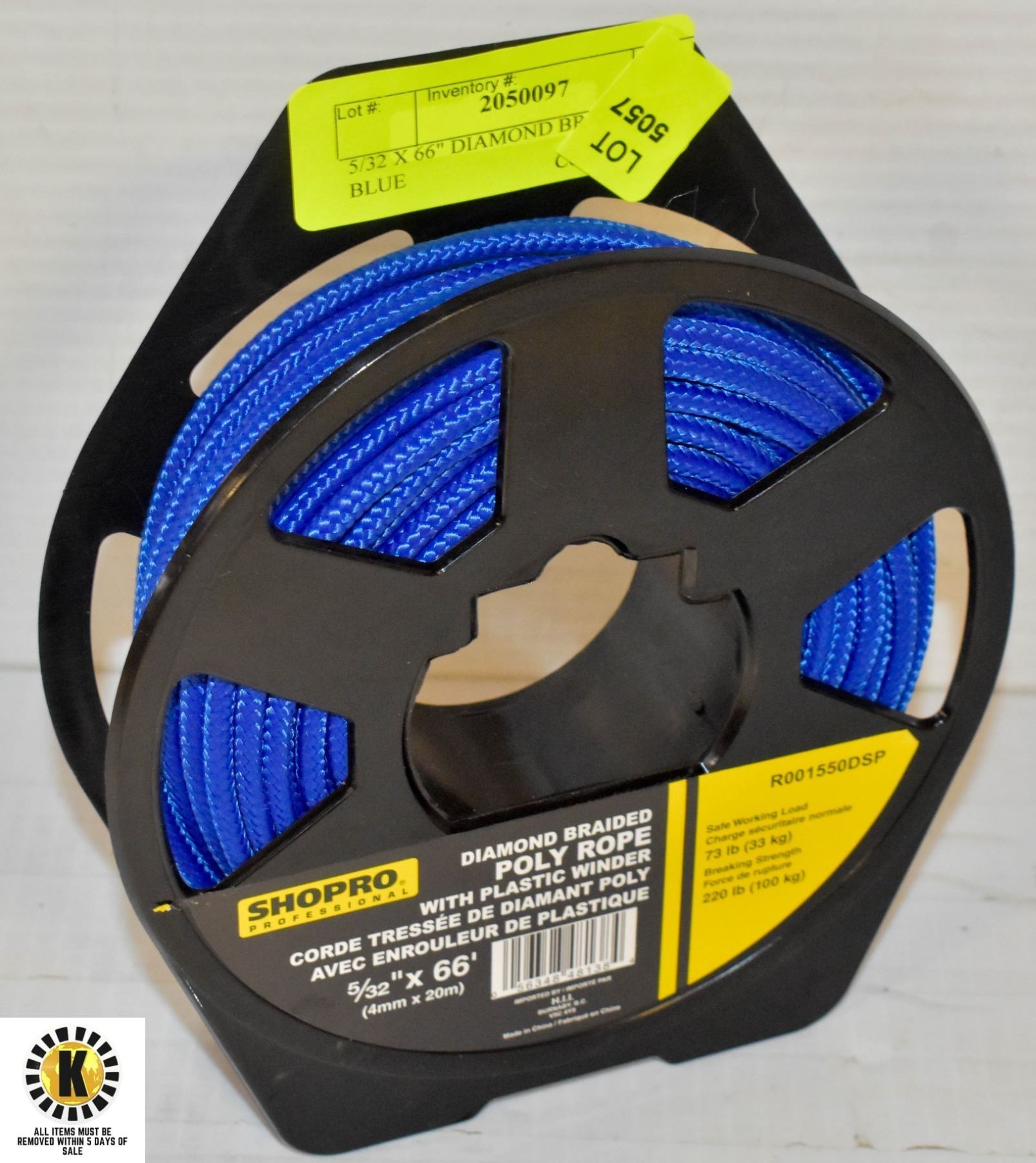 5/32 X 66" DIAMOND BRAIDED ROPE BLUE