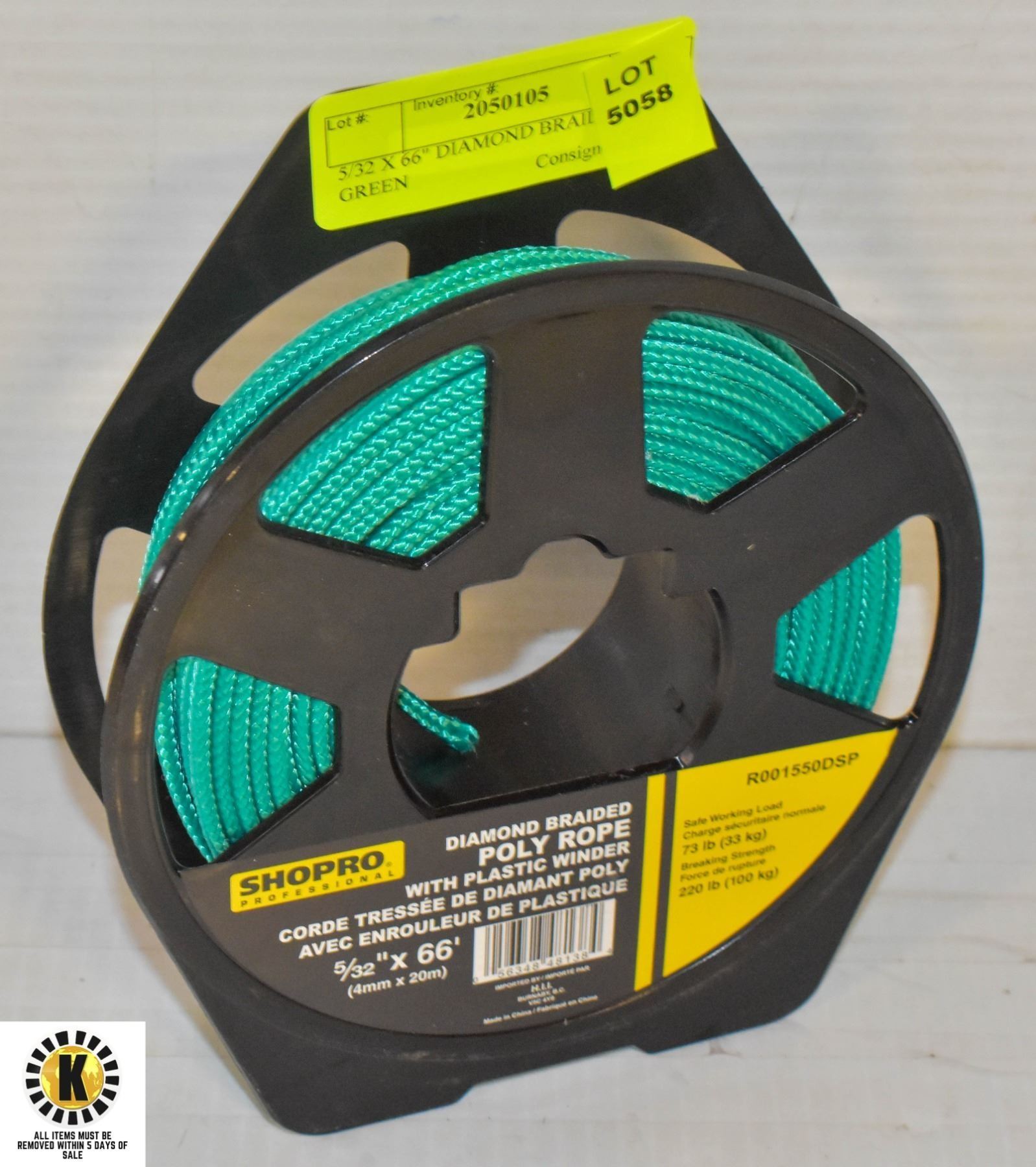 5/32 X 66" DIAMOND BRAIDED ROPE GREEN