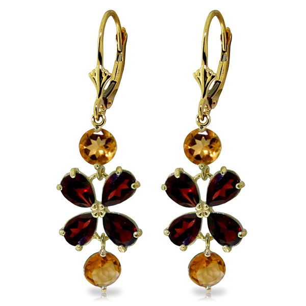 Genuine 14K Yellow Gold 5.32 ctw Garnet & Citrine Earrings