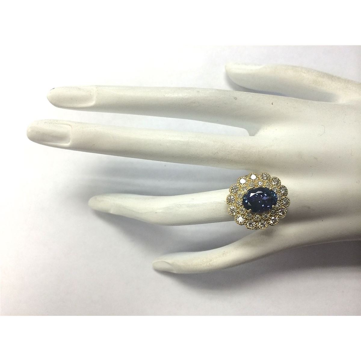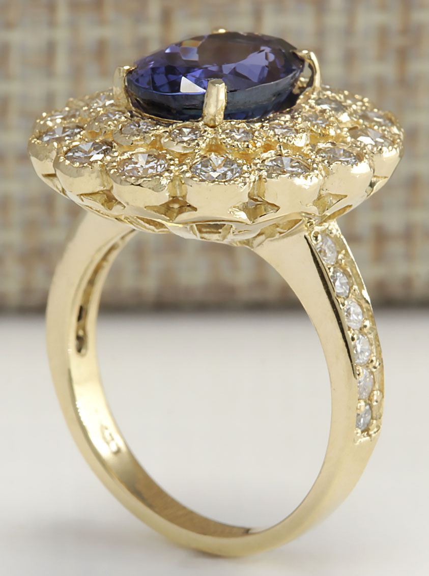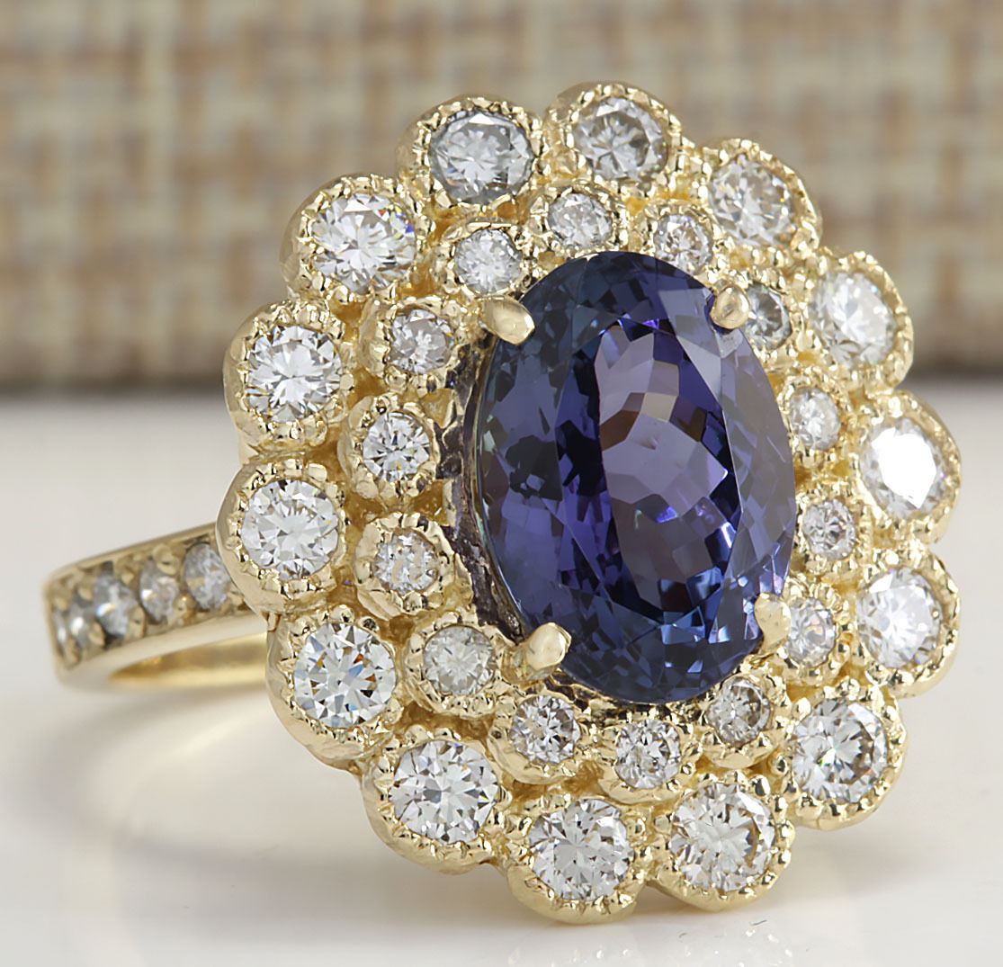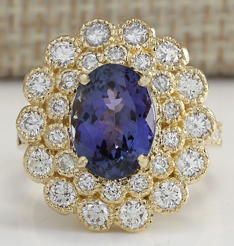 Stamped: 14K Ring Size: 6 Total Ring Weight: 7 Grams Diamond Weight: Total natural diamond weight is 1.85carat. SI1-SI2 clarity / G-H color Gemstone Weight: Total Natural Tanzanite Weight is 3.47ctw (Measures: 10.56x7.82mm) Face Measures: 20.03x18.61mm Main stone color: Blue [SKU:702650]