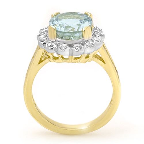 REF-81N8Y -14503 ---- 5.33 CTW Aquamarine & Diamond Ring 10K Yellow Gold ---- Luxury Designer Brand Ring Appraised at $5,400 Certificate Number US14503 10k Yellow gold, Ring Size is 6.75, Ring measuring approx. 5/8" x 3/4" , weighing in total approx. 5.8 grams. Made in the USA and is stamped 10k, Main stone 5 carat total weight containing 1 pieces of Translucent Medium Blue color with AAA quality Oval shape cut Aquamarine , Stone #2 0.33 carat total weight containing 24 pieces of H-I color with VS/SI quality Round shape cut Diamond
