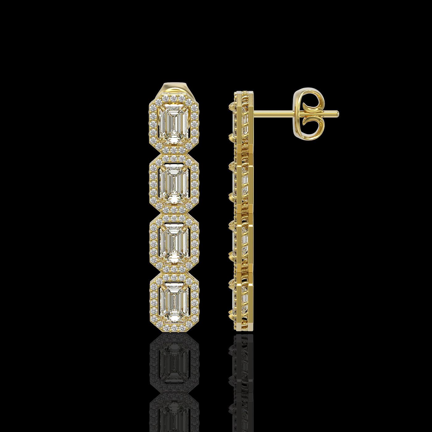 REF-1125H6A -42667 ---- 5.33 CTW Emerald Cut Diamond Designer Earrings 18K Yellow Gold ---- Luxury Designer Brand Earring Appraised at $49,550 Certificate Number US42667  18K Yellow gold,  Earring Size is 1 1/3 Inches Long, Earring measuring approx. 7 x 34 mm Long, weighing in total approx. 7.5 grams. Made in the USA and is stamped 18K, Main stone 4.05 carat total weight containing 8 pieces of I-J color with VS/SI quality Emerald Cut shape cut Diamond , Stone #2 1.28 carat total weight containing 160 pieces of G-H color with  VS/SI quality Round shape cut Diamond