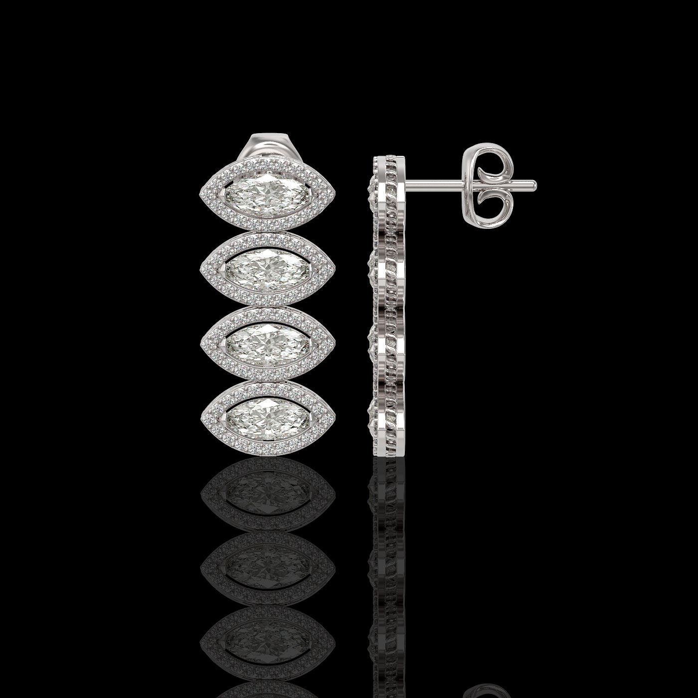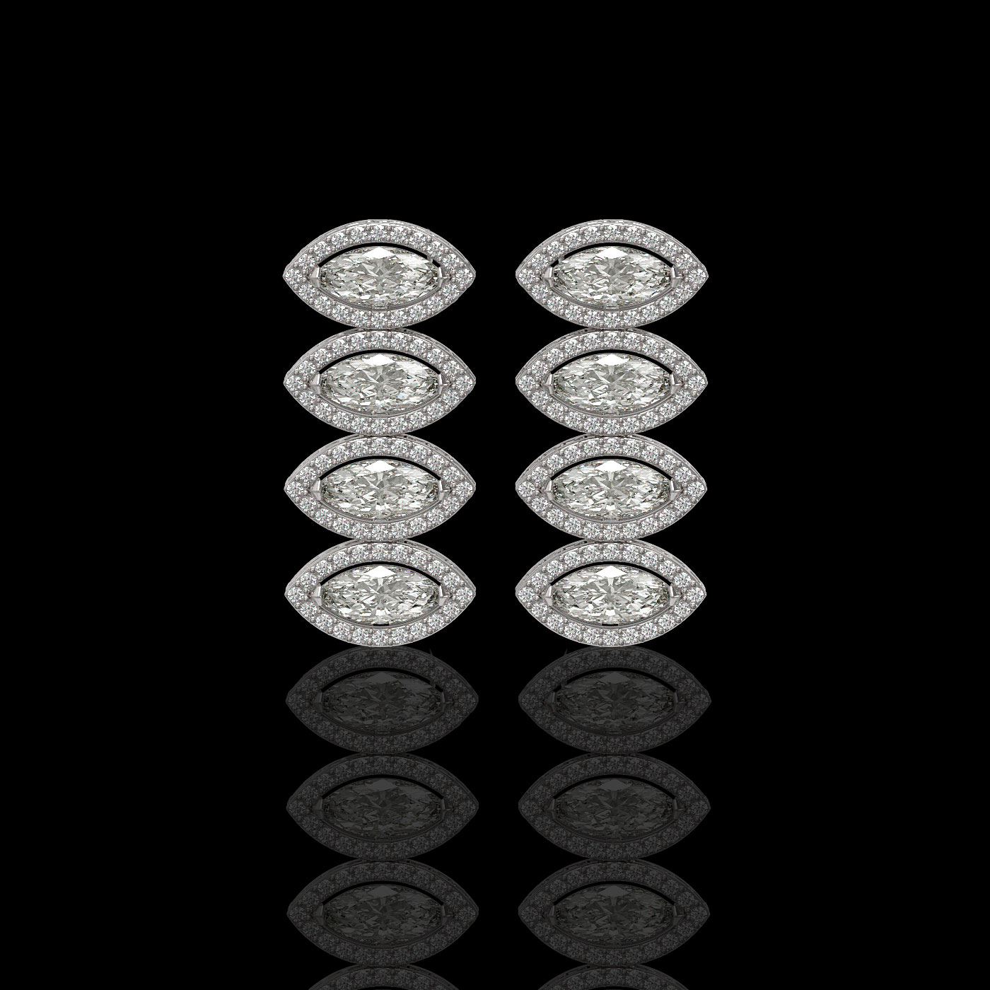 REF-986T2M -42782 ---- 5.33 CTW Marquise Diamond Designer Earrings 18K White Gold ---- Luxury Designer Brand Earring Appraised at $43,400 Certificate Number US42782 18K White gold, Earring Size is 1 Inche Long, Earring measuring approx. 12 x 27 mm, weighing in total approx. 8.5 grams. Made in the USA and is stamped 18K, Main stone 4.05 carat total weight containing 8 pieces of I-J color with VS/SI quality Marquise shape cut Diamond , Stone #2 1.28 carat total weight containing 160 pieces of G-H color with VS/SI quality Round shape cut Diamond