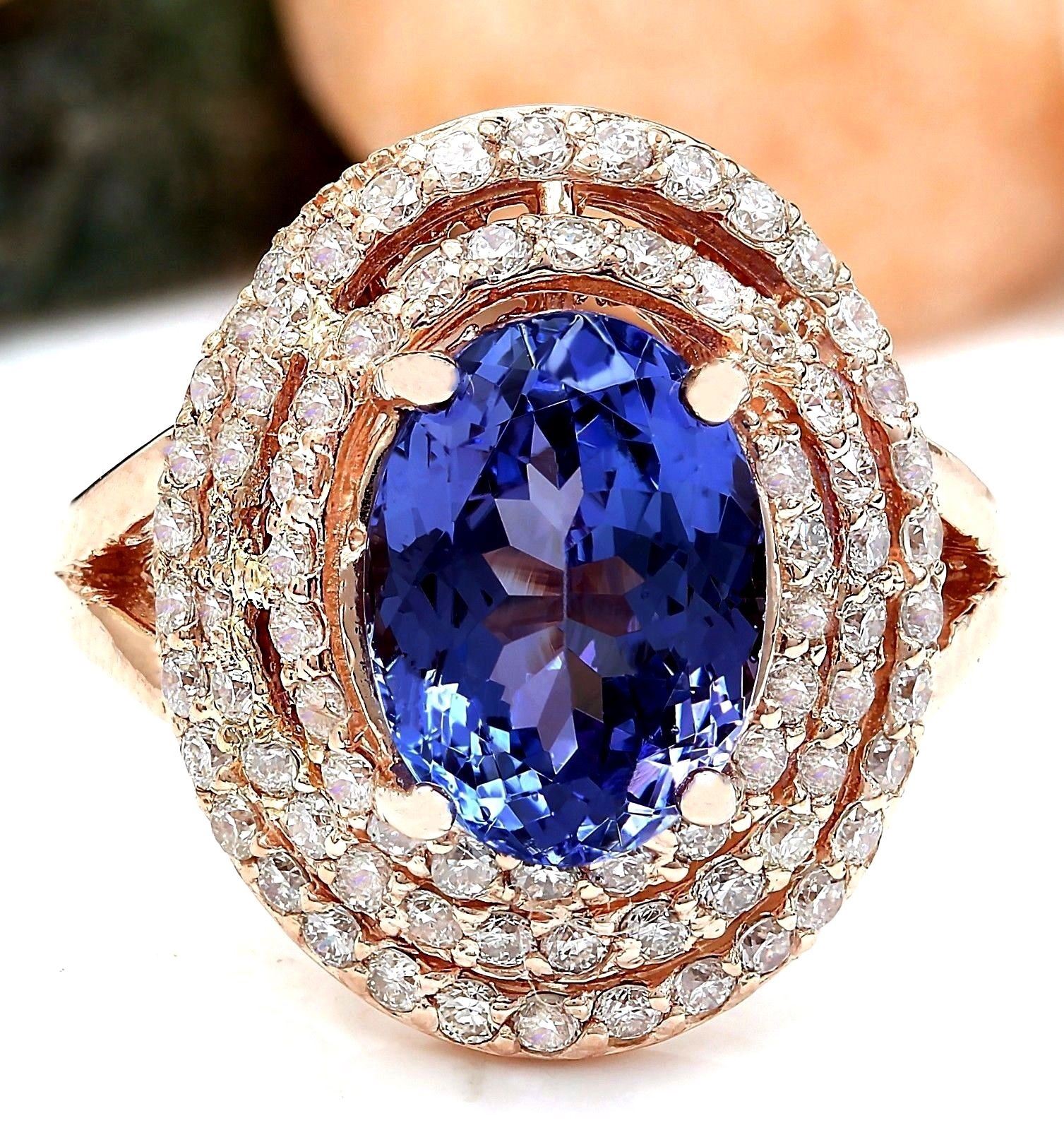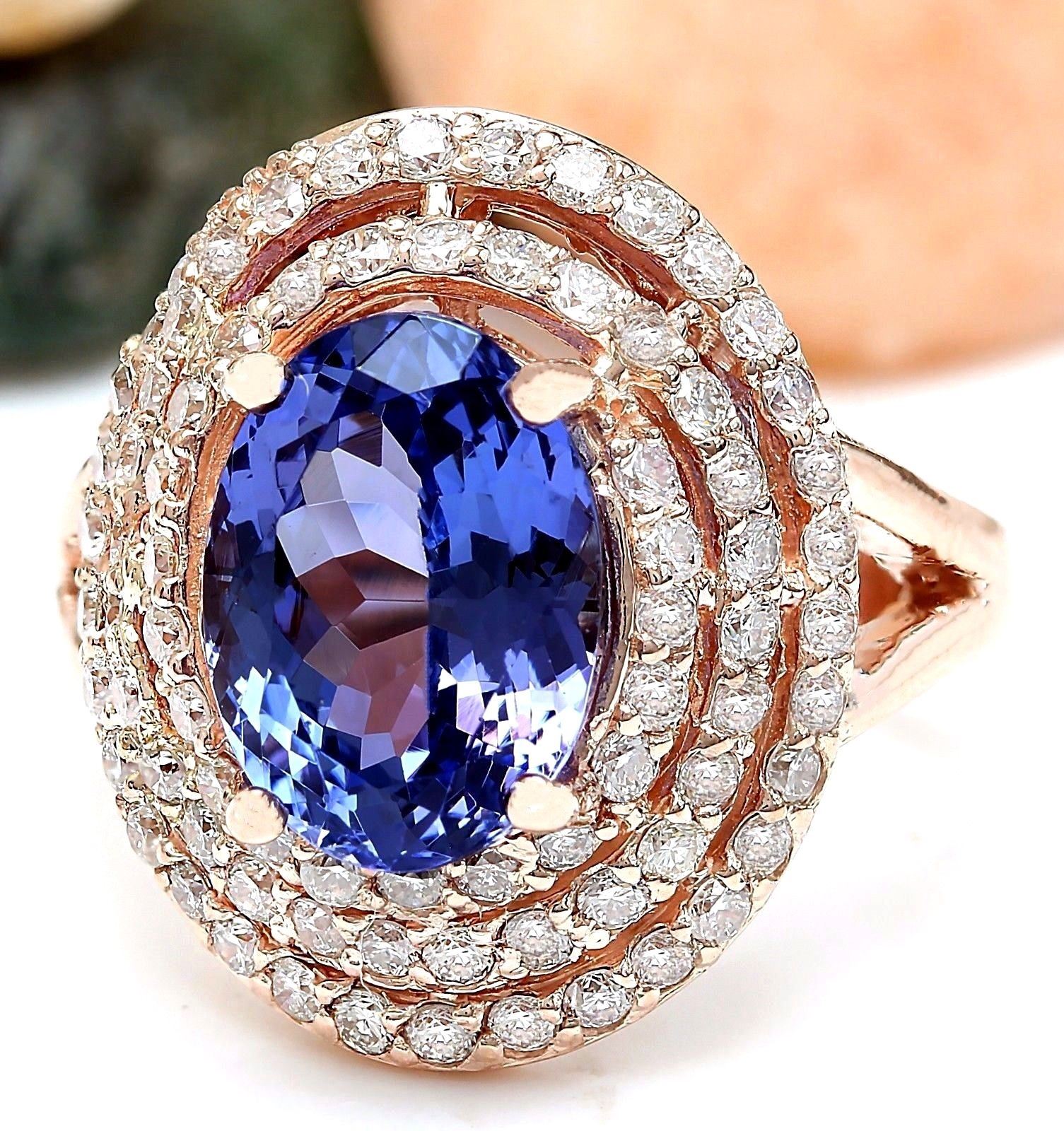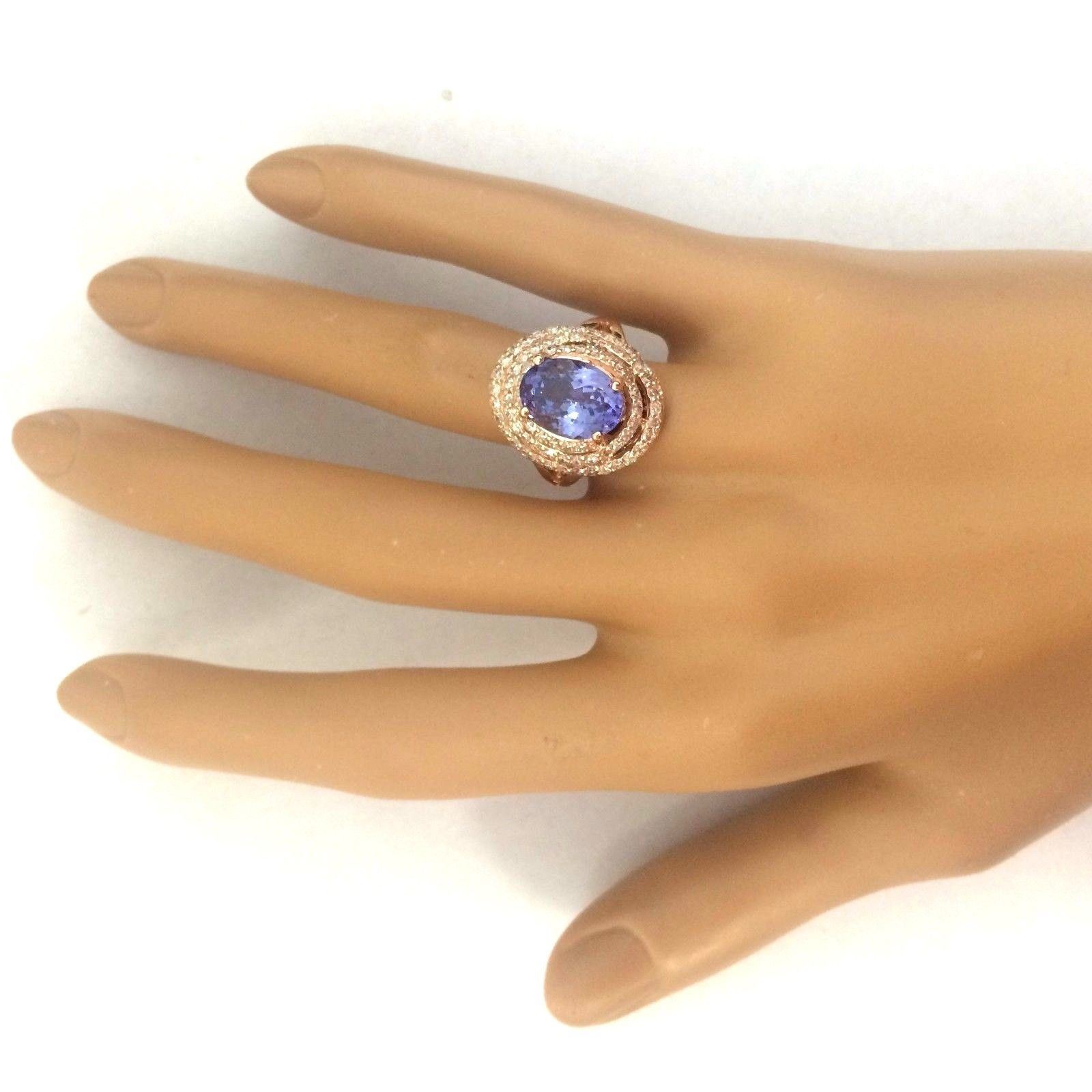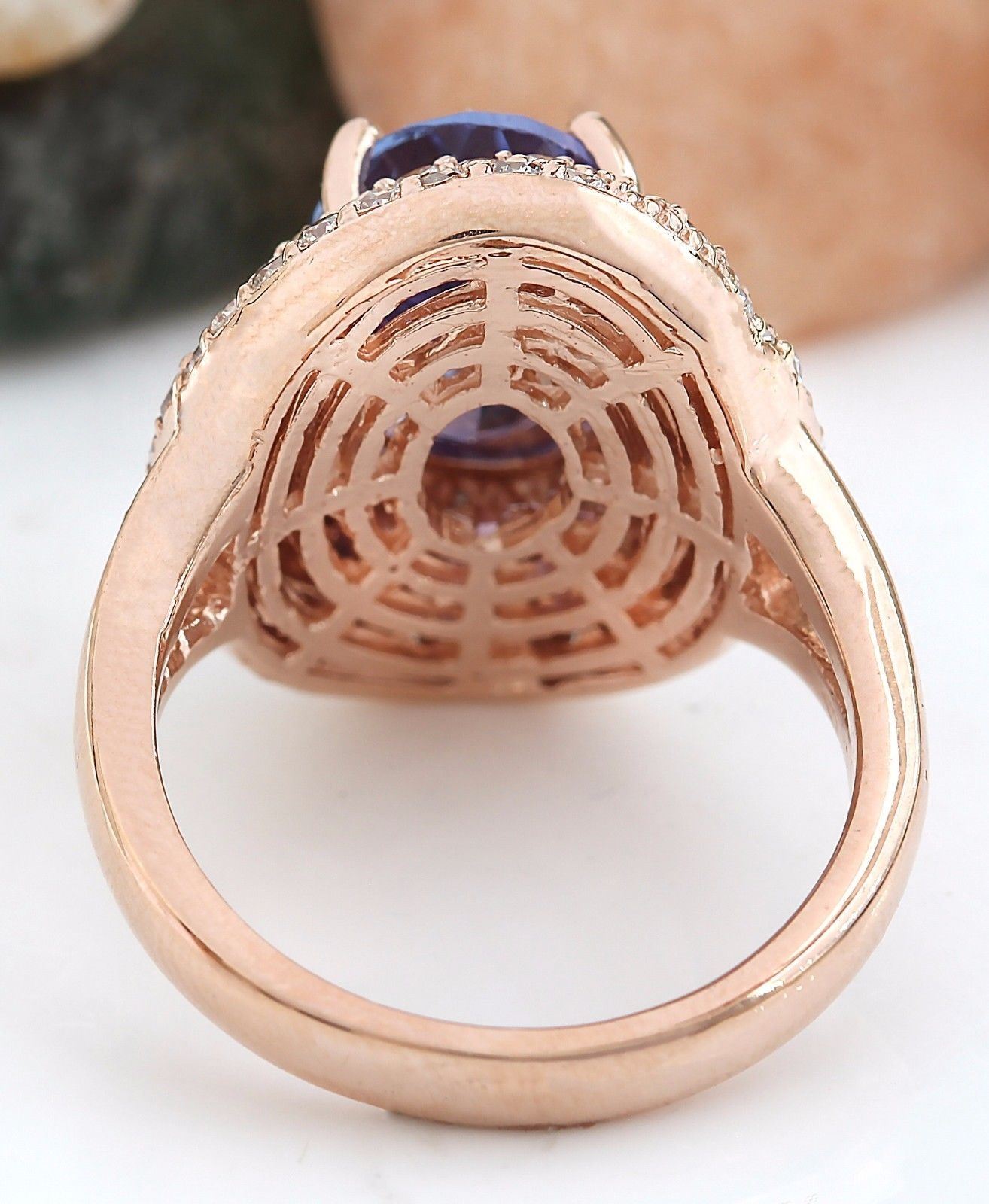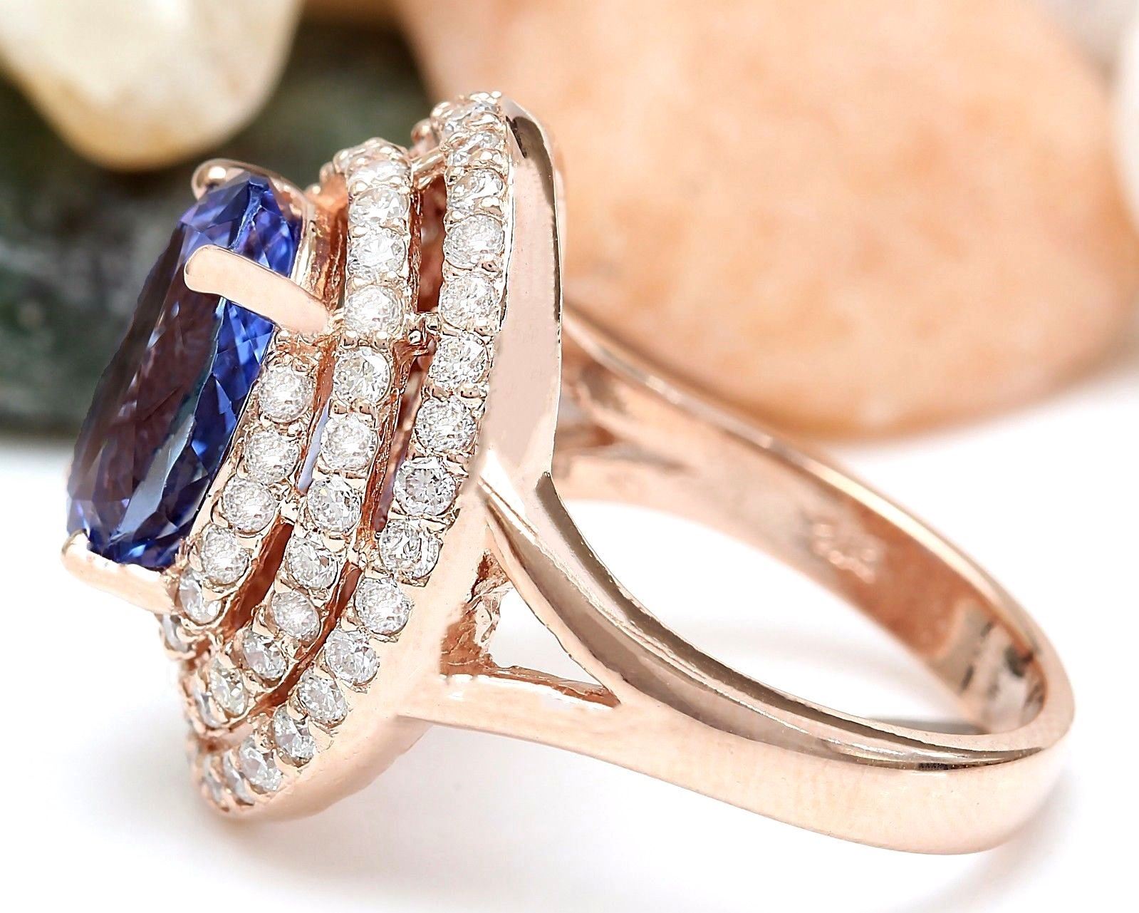 5.33 Carat Natural Tanzanite 14K Solid Rose Gold Diamond Ring