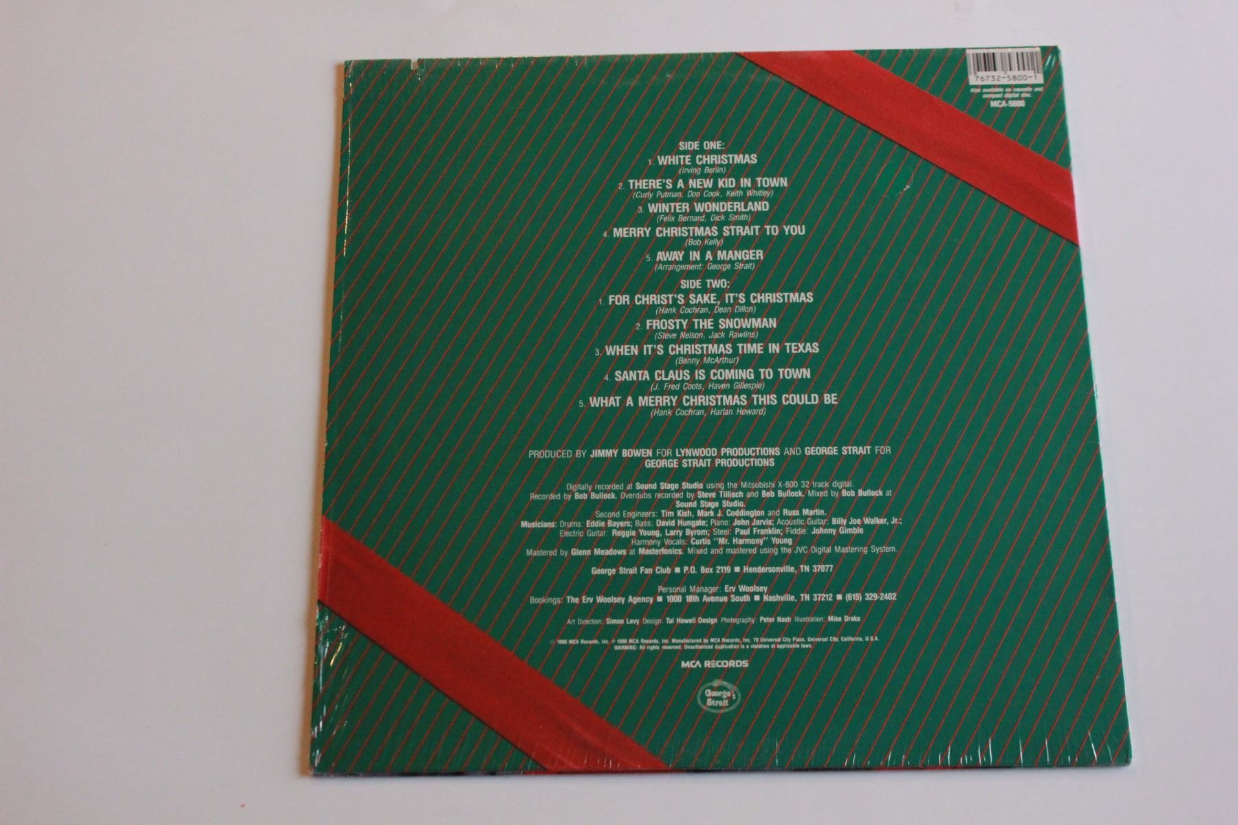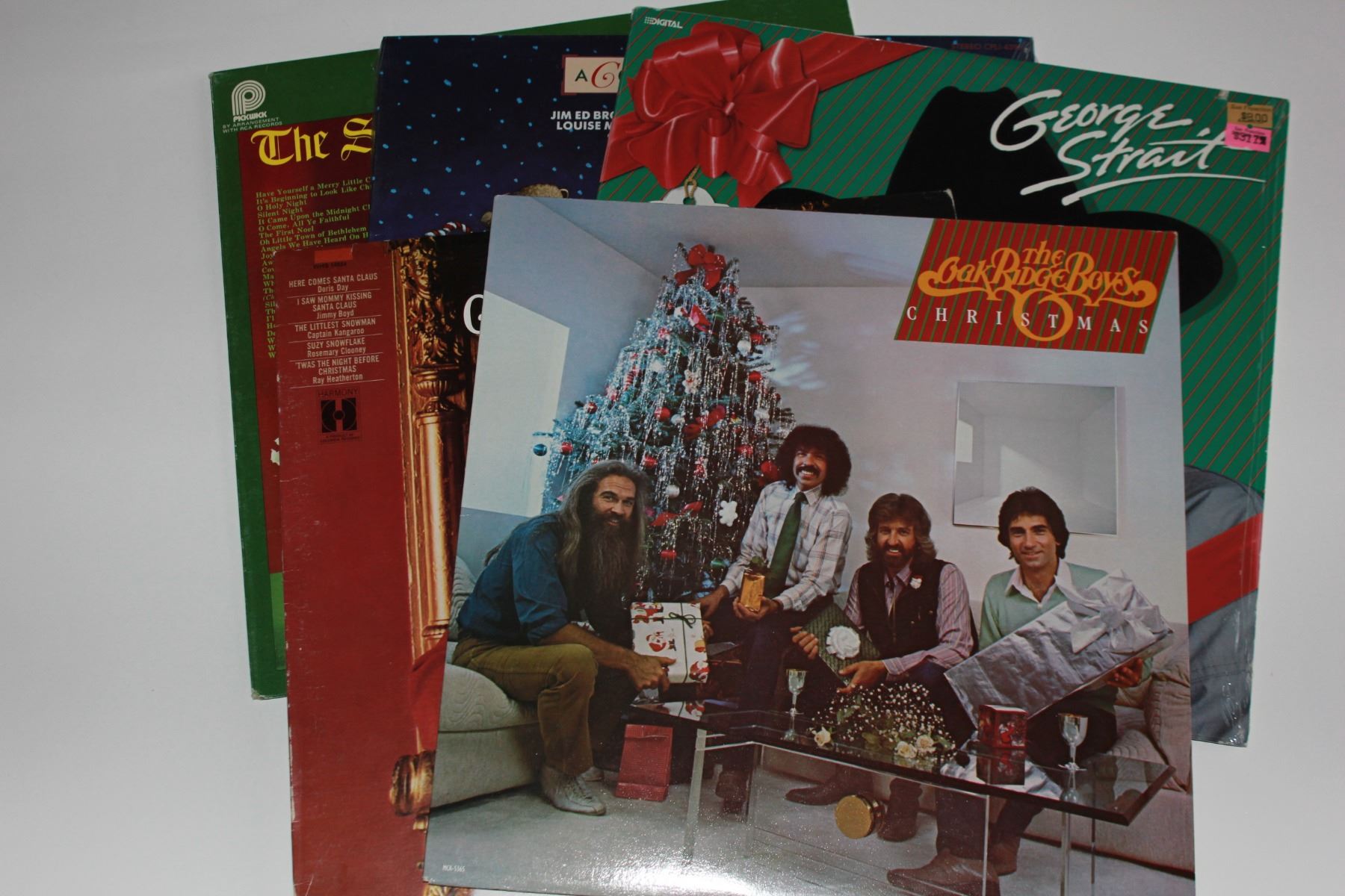 The Oakridge Boys Christmas, First Christmas Record for Children, George Strait Merry Christmas Strait To You, A Country Christmas, The Spirit of Christmas with The Living Strings. All records are in good shape.