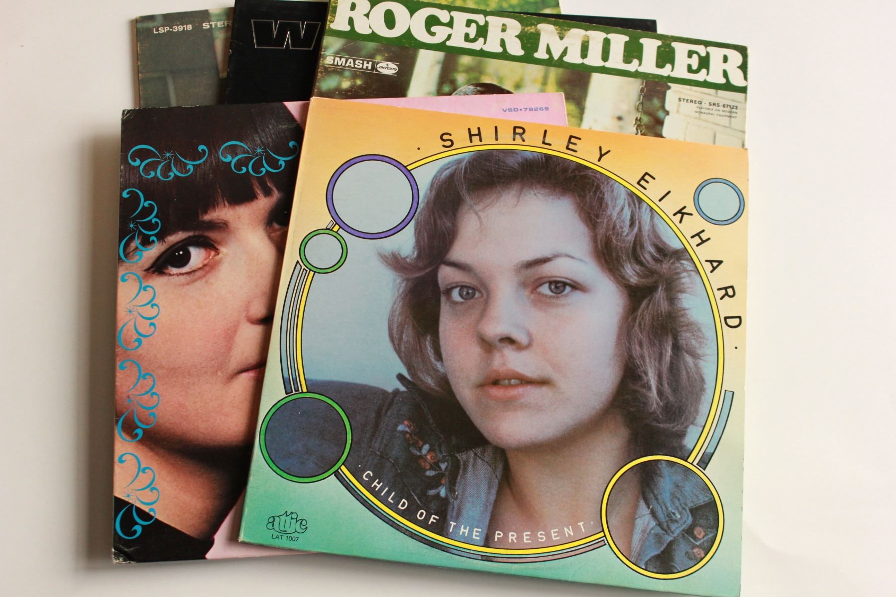 Shirley Eikhard – Child Of The Present, The Best Of Ian And Sylvia, Roger Miller, Waylon – Black On Black, Waylon Jennings – Hangin’ On. All records are in good shape.