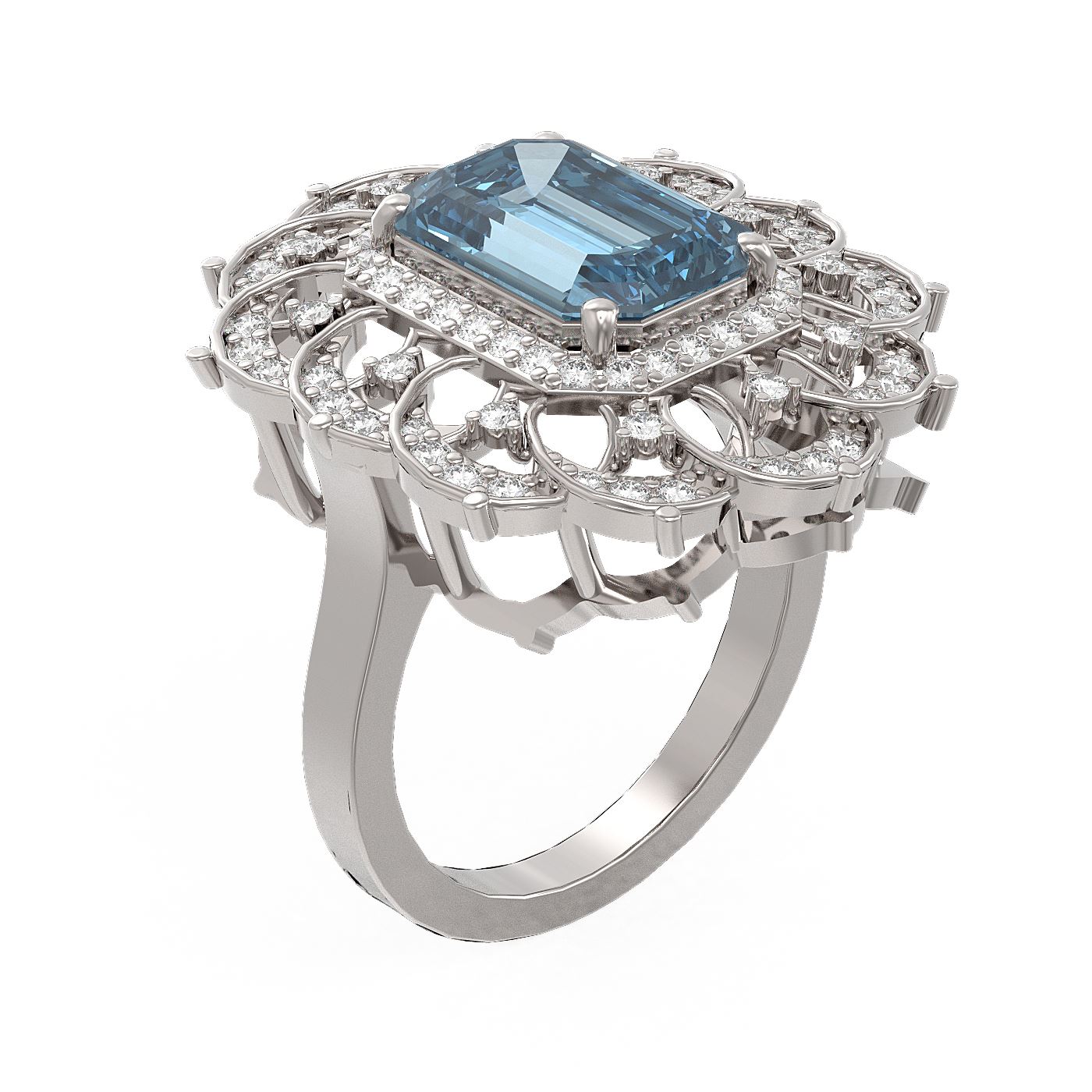 REF-140W9H - SKU: 53545 ---- 5.33 ctw Blue Topaz & Diamond Ring 18K White Gold