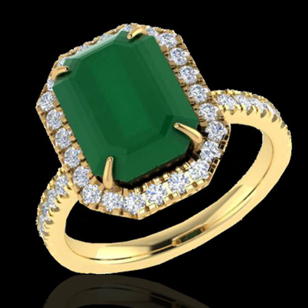 REF-87A6N - SKU: 21426 ---- 5.33 ctw Emerald & Micro Pave VS/SI Diamond Ring 18k Yellow Gold