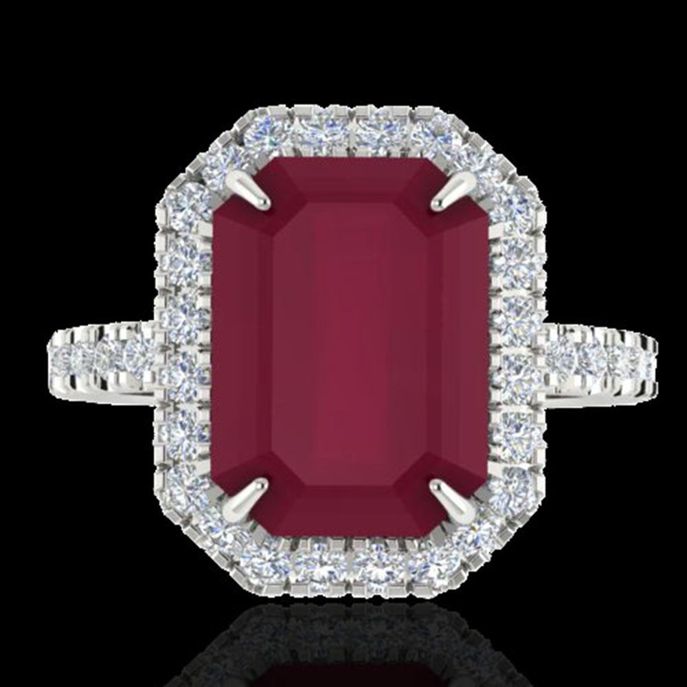 REF-94N4F - SKU: 21432 ---- 5.33 ctw Ruby & Micro Pave VS/SI Diamond Ring 18k White Gold