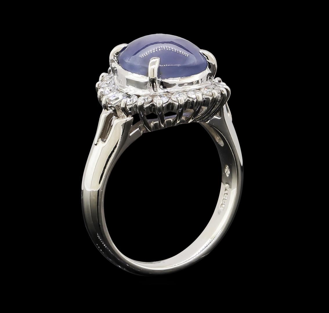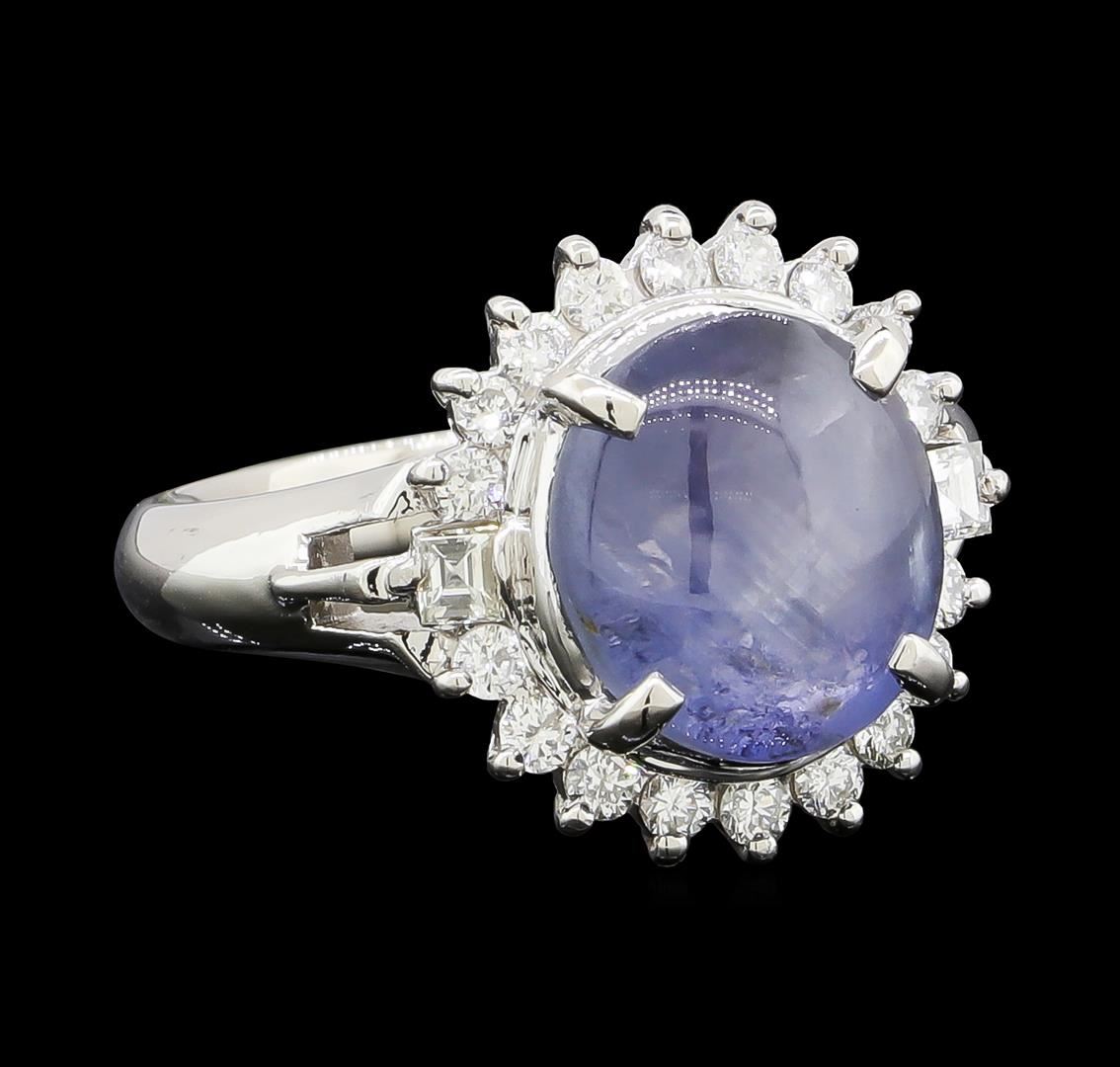 One ring featuring: Platinum containing Star Sapphire with a total weight of 5.33ct and Diamonds with a total weight of 0.43ct. Total Weight of Ring: 8.1 grams.
