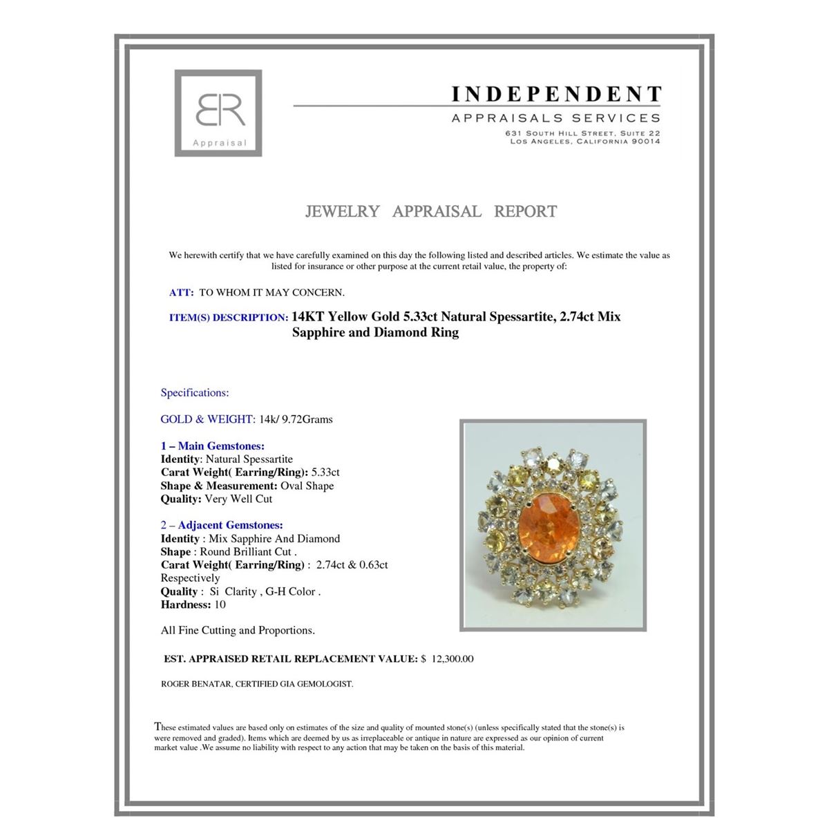14K Y/G NATURAL SPESSARTITE RING: 9.72GR /MIX SAPPHIRE: 2.74CT/DIA :0.63CT/ SPESSARTITE :5.33CT /:/#GVR1364