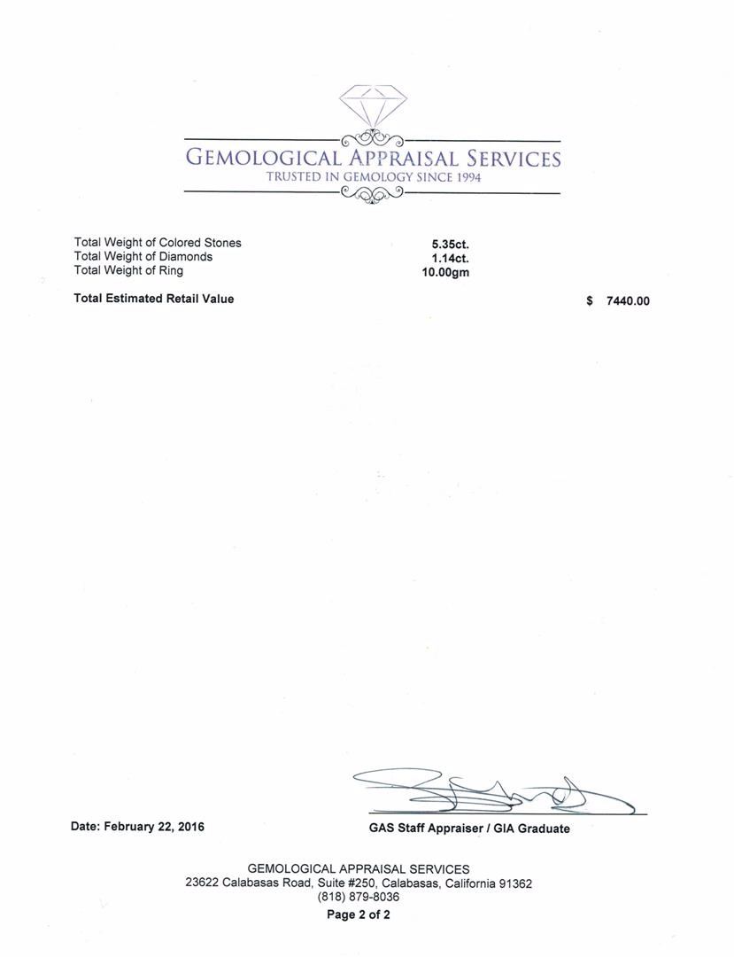 Not all Jewelry, watches or loose stones are appraised and the appraisals are provided for bidders only in certain instances at the discretion of SAA. Our appraisals are conducted by independent third-party appraisal firms. Such firms may be certified GIA Gemologists or have education in the industry or alternative certifications. Appraisals should be used for verification of gemstone and/or metal weight, size, and grade only, not actual value for resale or insurance purposes. Appraisal value should be not considered for actual value, as price varies greatly from retail locations and other merchants in different geographic locations. All Items auctioned by SAA should not be purchased with a view or expectation toward resale for appraisal price given, or to make a profit. The ultimate value for which an item can be resold may vary drastically from the appraisals listed by SAA.