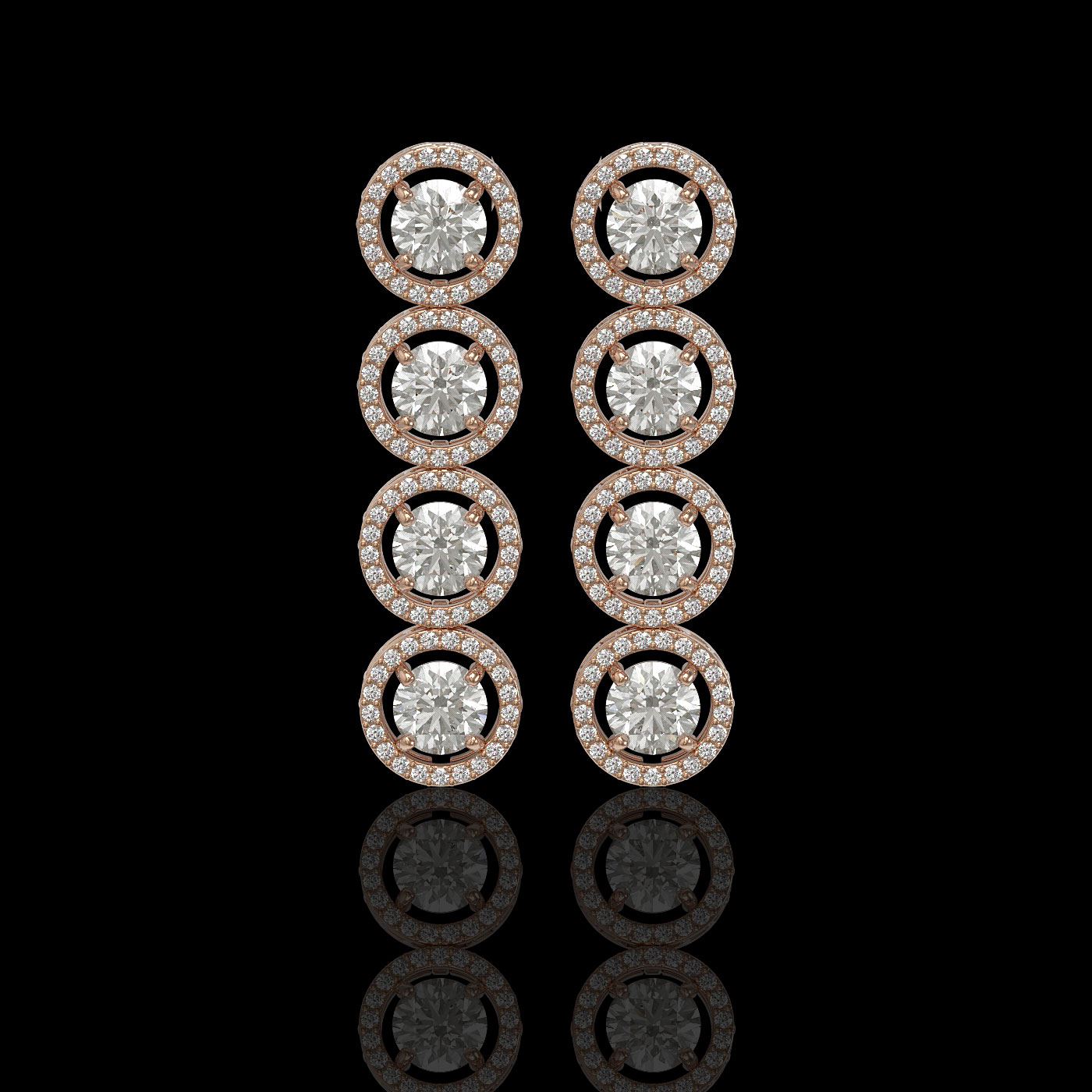 REF-842A2X -42585 ---- 5.36 CTW Diamond Designer Earrings 18K Rose Gold ---- Luxury Designer Brand Earring Appraised at $37,050 Certificate Number US42585 18K Rose gold, Earring Size is 1 1/2 Inches Long, Earring measuring approx. 9 x 36 mm Long, weighing in total approx. 9 grams. Made in the USA and is stamped 18K, Main stone 4.02 carat total weight containing 8 pieces of I-J color with VS/SI quality Round shape cut Diamond , Stone #2 1.34 carat total weight containing 168 pieces of G-H color with VS/SI quality Round shape cut Diamond