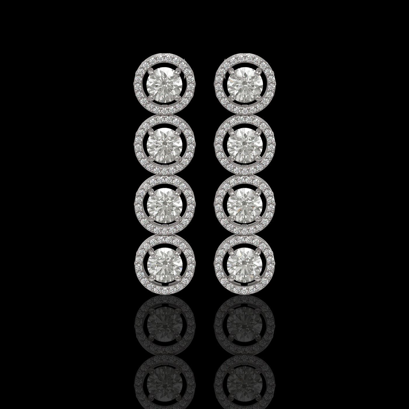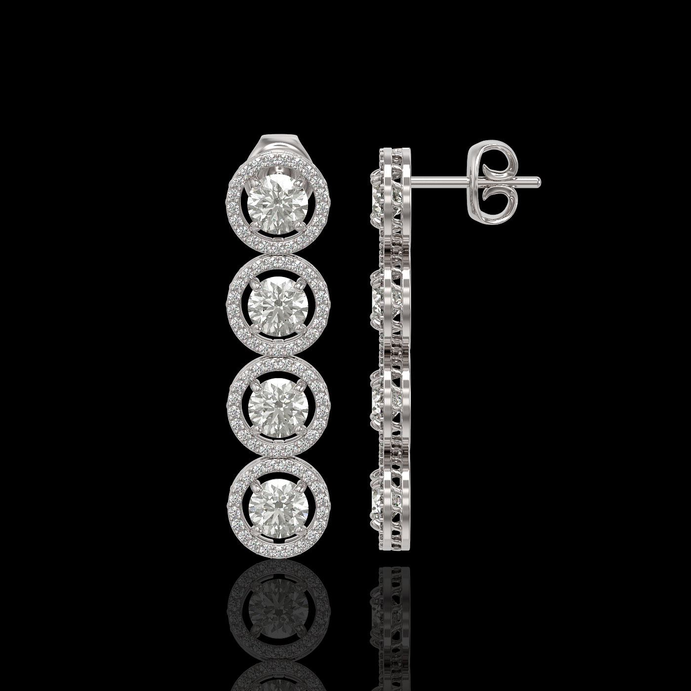REF-842F2N -42584 ---- 5.36 CTW Diamond Designer Earrings 18K White Gold ---- Luxury Designer Brand Earring Appraised at $37,050 Certificate Number US42584 18K White gold, Earring Size is 1 1/2 Inches Long, Earring measuring approx. 9 x 36 mm Long, weighing in total approx. 9 grams. Made in the USA and is stamped 18K, Main stone 4.02 carat total weight containing 8 pieces of I-J color with VS/SI quality Round shape cut Diamond , Stone #2 1.34 carat total weight containing 168 pieces of G-H color with VS/SI quality Round shape cut Diamond
