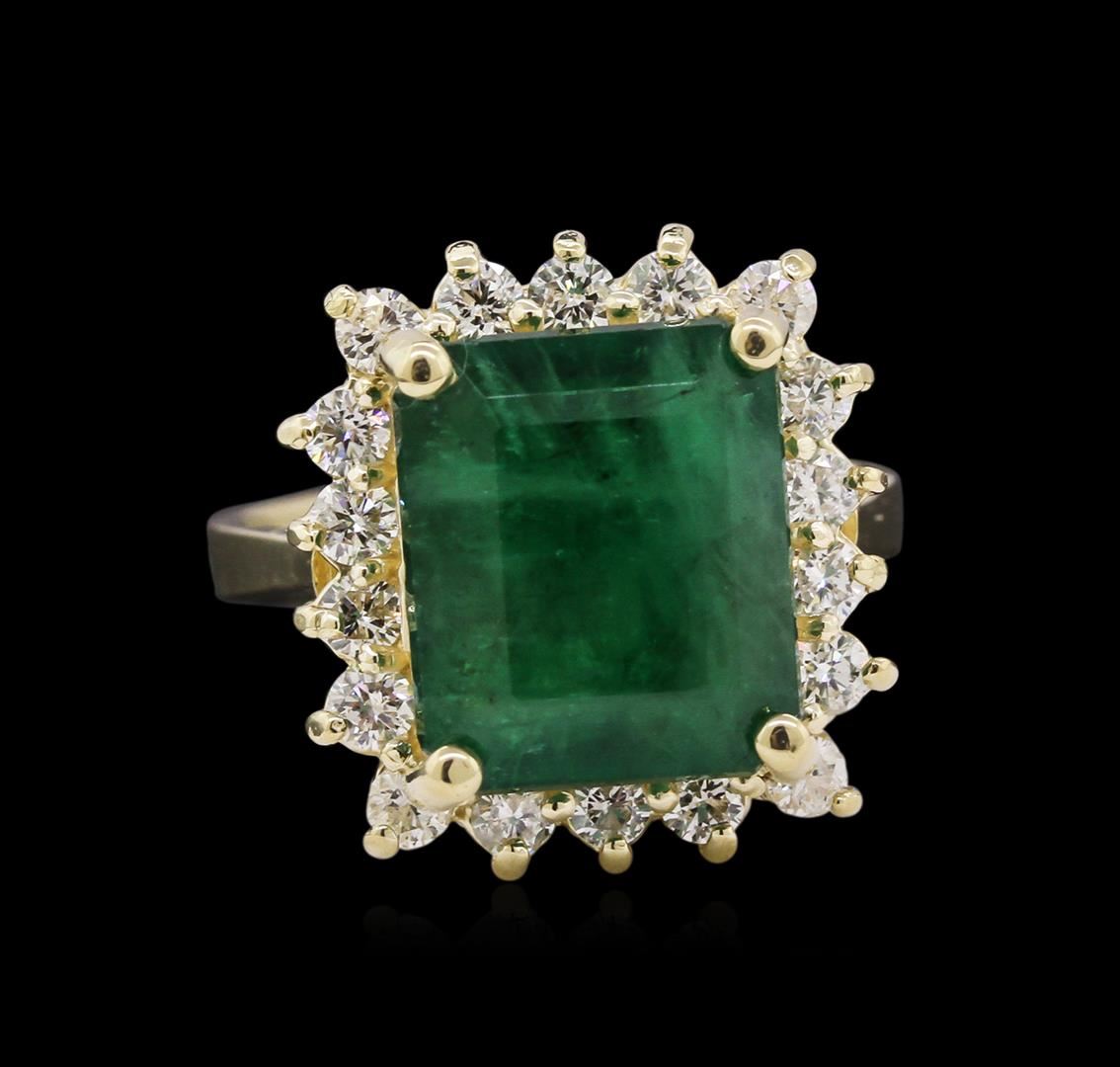 One ring featuring: 14KT yellow gold weighing 5.60 grams containing one emerald with a total weight of 5.36ct and diamonds with a total weight of 0.70ct.