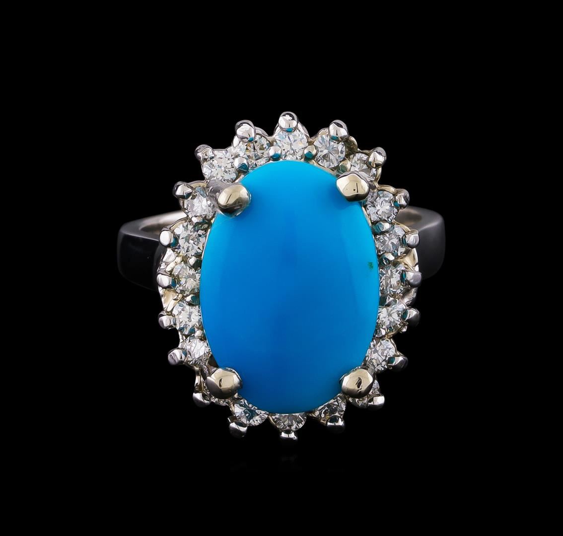 One ring featuring: 14KT white gold weighing 6.75 grams containing one turquoise center stone with a total weight of 5.37ct and diamonds with a total weight of 0.65ct.