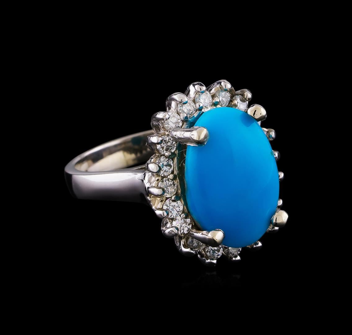 One ring featuring: 14KT white gold weighing 6.75 grams containing one turquoise center stone with a total weight of 5.37ct and diamonds with a total weight of 0.65ct.