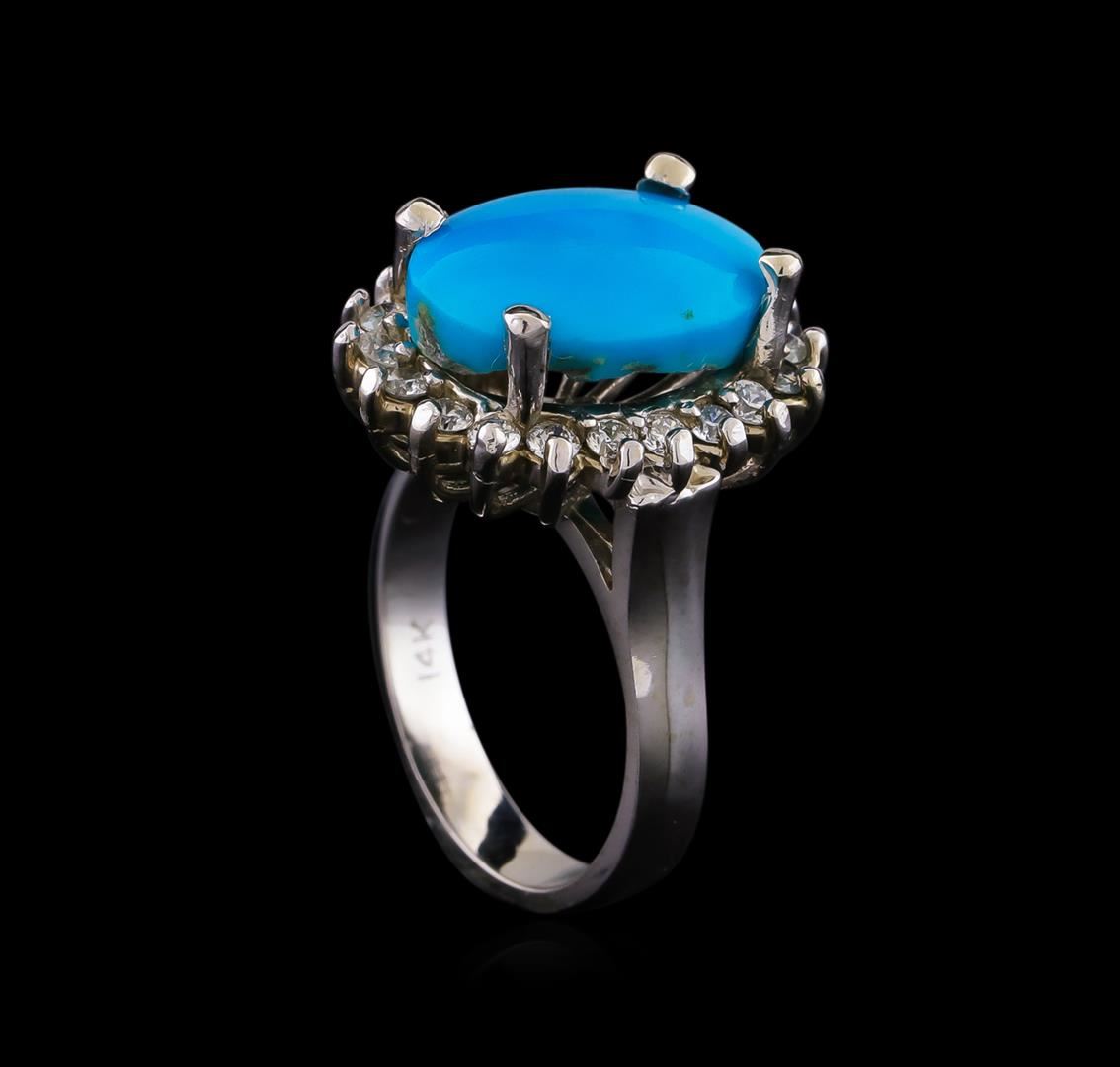 One ring featuring: 14KT white gold weighing 6.75 grams containing one turquoise center stone with a total weight of 5.37ct and diamonds with a total weight of 0.65ct.