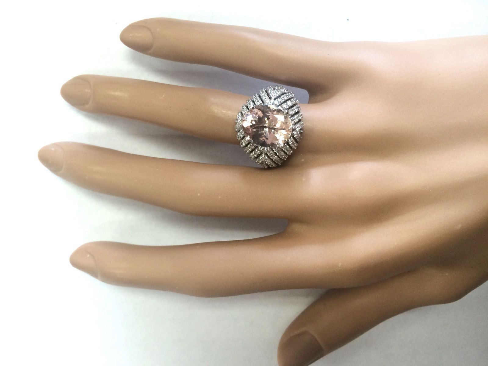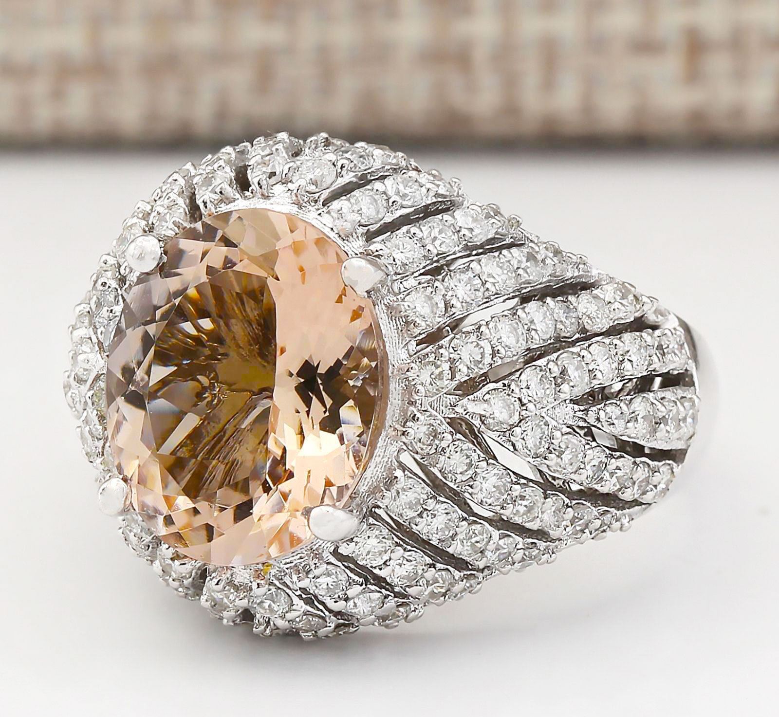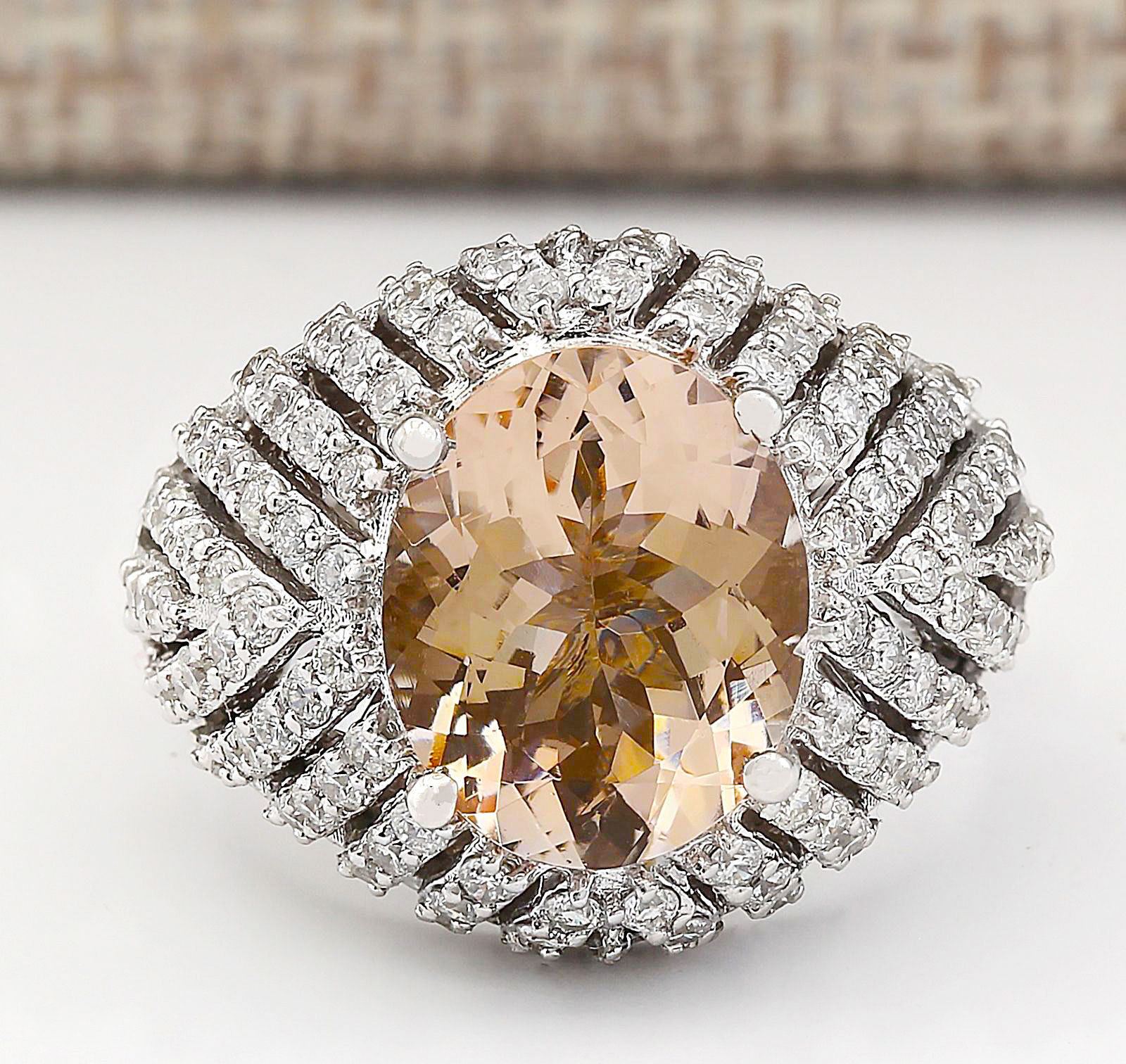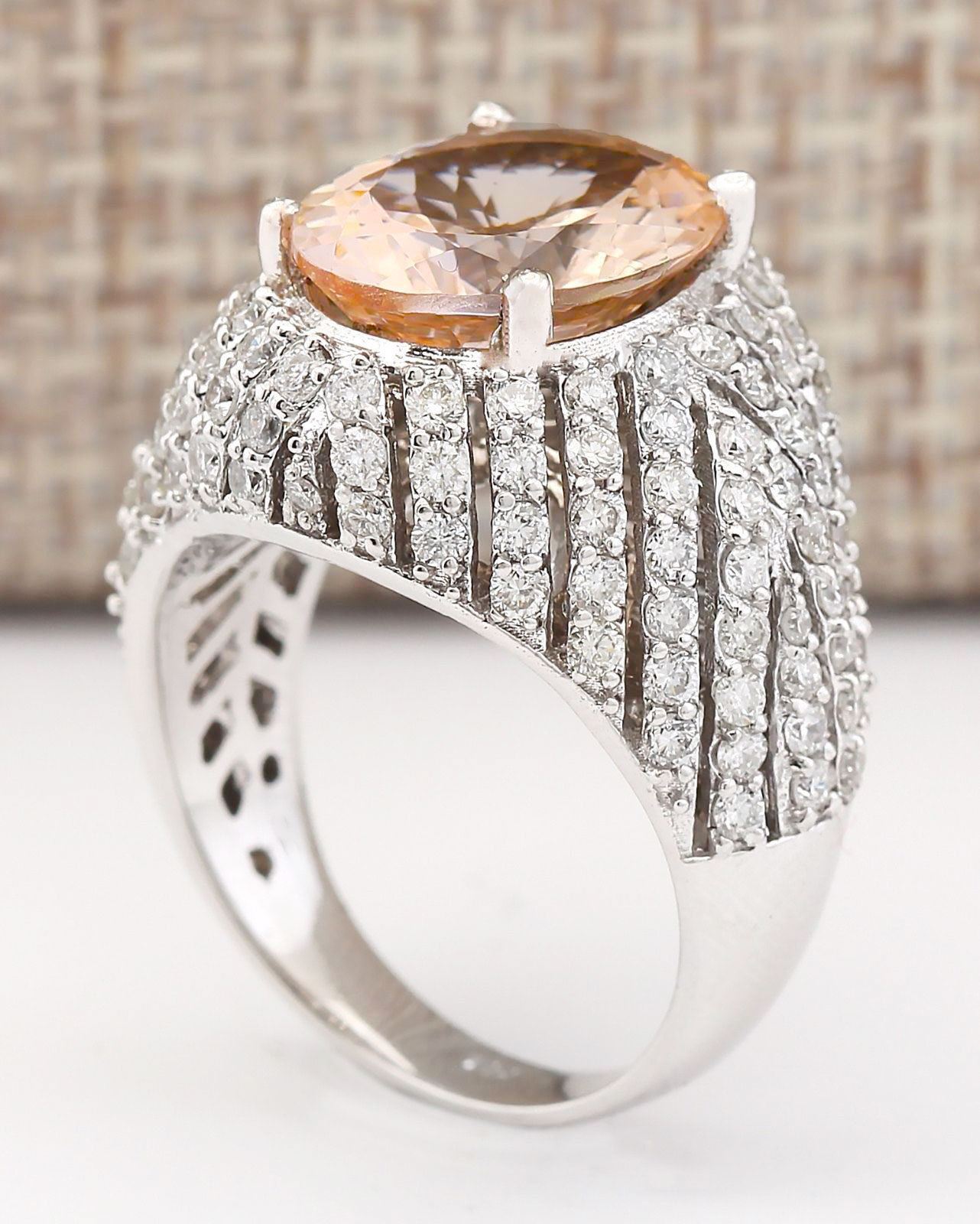 5.38 CTW Natural Morganite And Diamond Ring In 18K White Gold