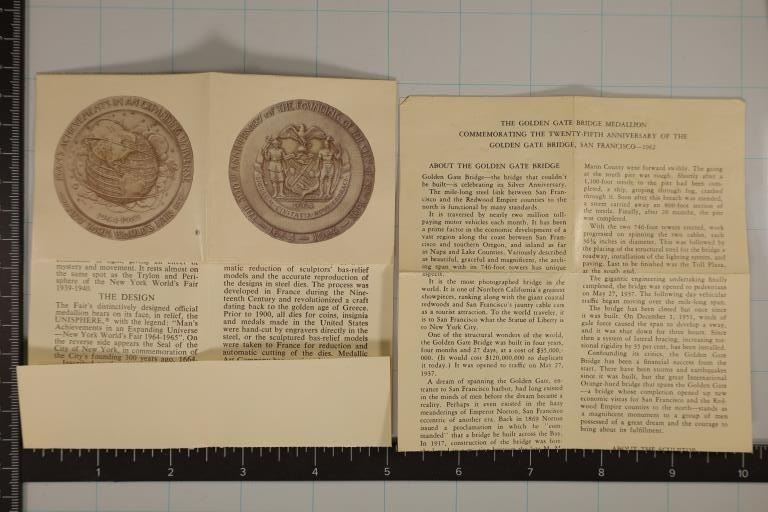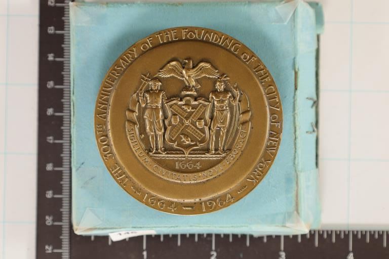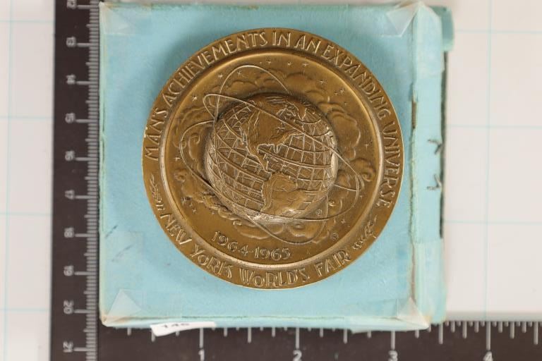 YORK WORLD'S FAIR" UNC, HIGH RELEIF WITH ANTIQUE FINISH IN ORIGINAL MEDALLIC ART COMPANY BOX WITH PAPERWORK. BOX IS DAMAGED