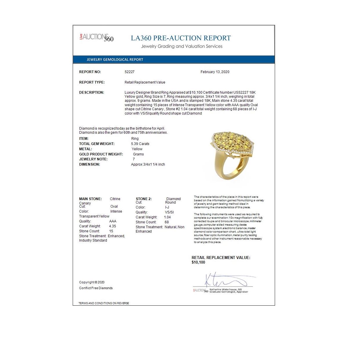 REF-229R3K - SKU: 52227 ---- 5.39 ctw Canary Citrine & Diamond Ring 18K Yellow Gold