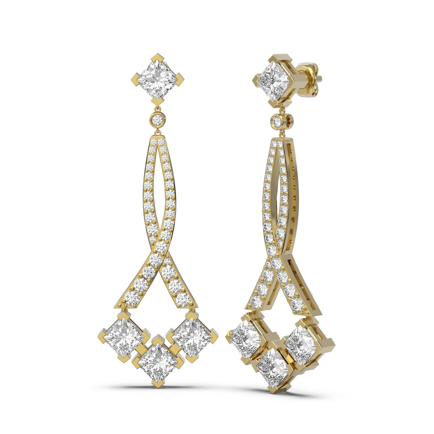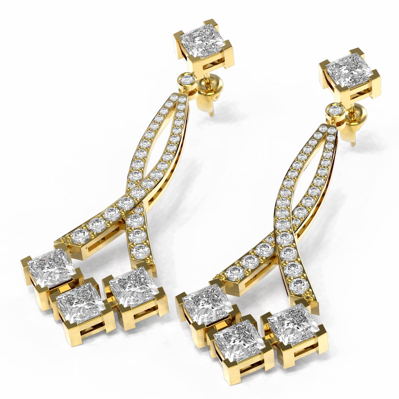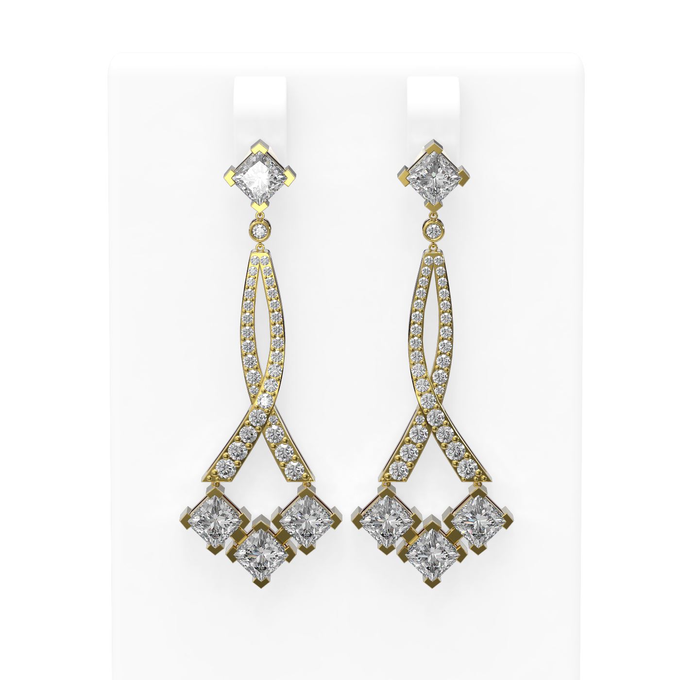 SKU: 57124 ---- 5.39 ctw Princess Diamond Earrings 18K Yellow Gold