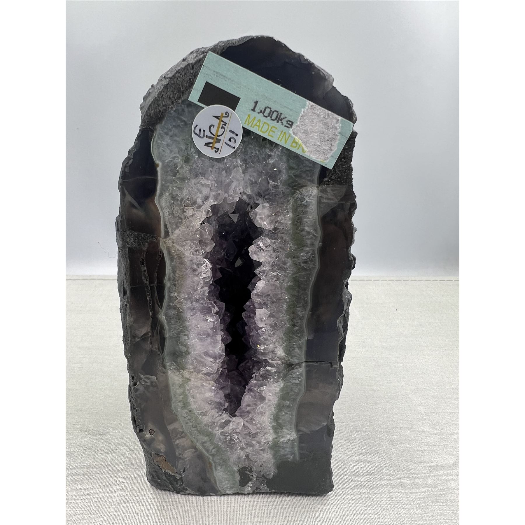 5.4 X 2.1 INCH AMETHYST GEODE WITH GREEN AGATE BANDS