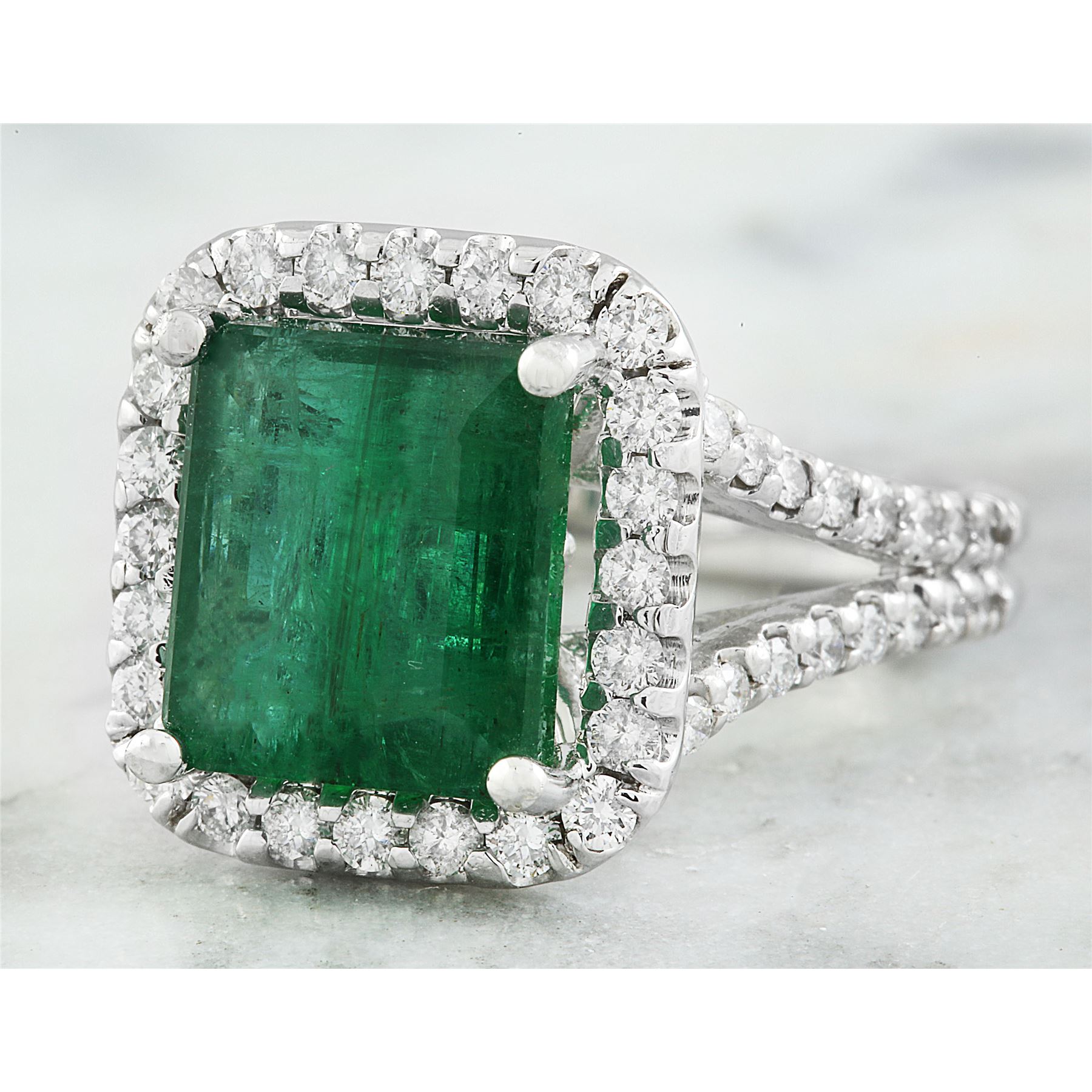 5.40 CTW Emerald 14K White Gold Diamond Ring
