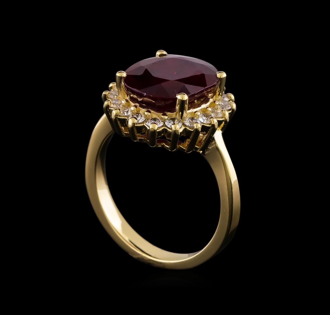 One ring featuring: 14KT Yellow gold weighing 5.30 grams containing one Ruby with a total weight of 5.40ct and diamonds with a total weight of 0.60ctw.