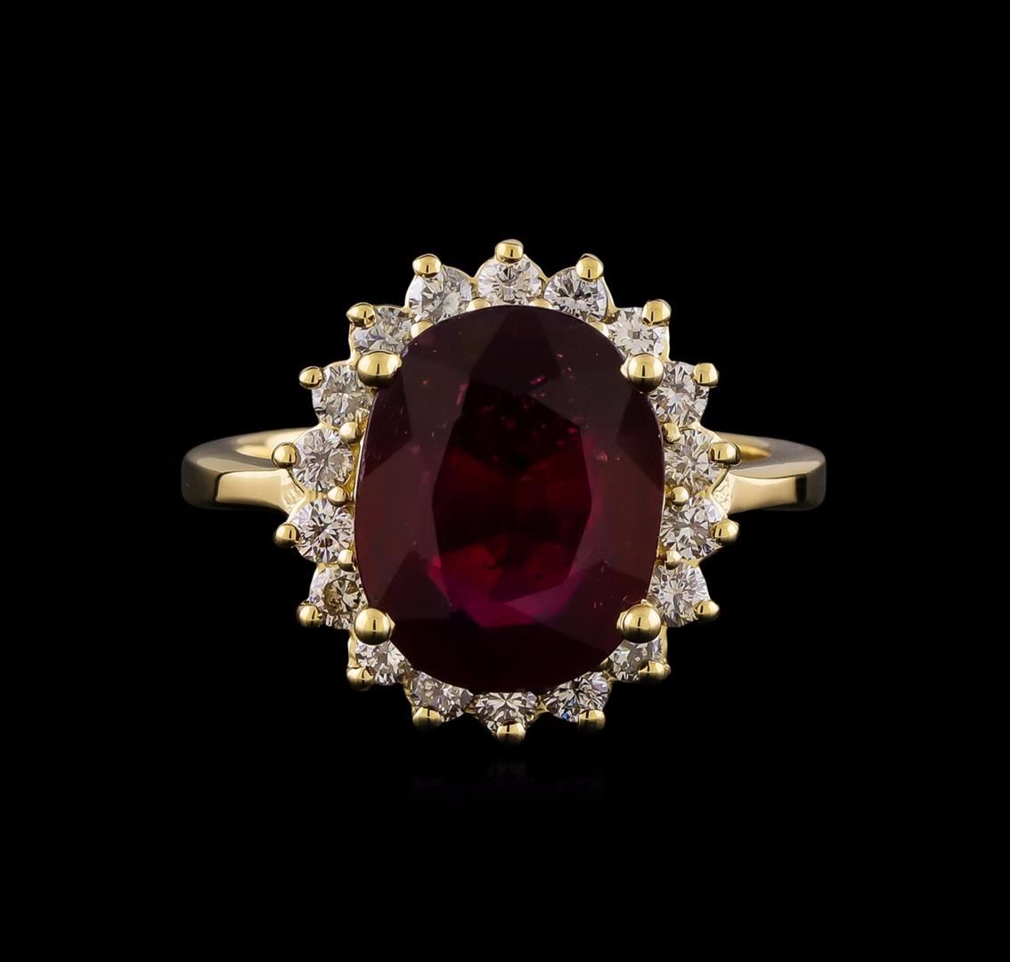 One ring featuring: 14KT Yellow gold weighing 5.30 grams containing one Ruby with a total weight of 5.40ct and diamonds with a total weight of 0.60ctw.
