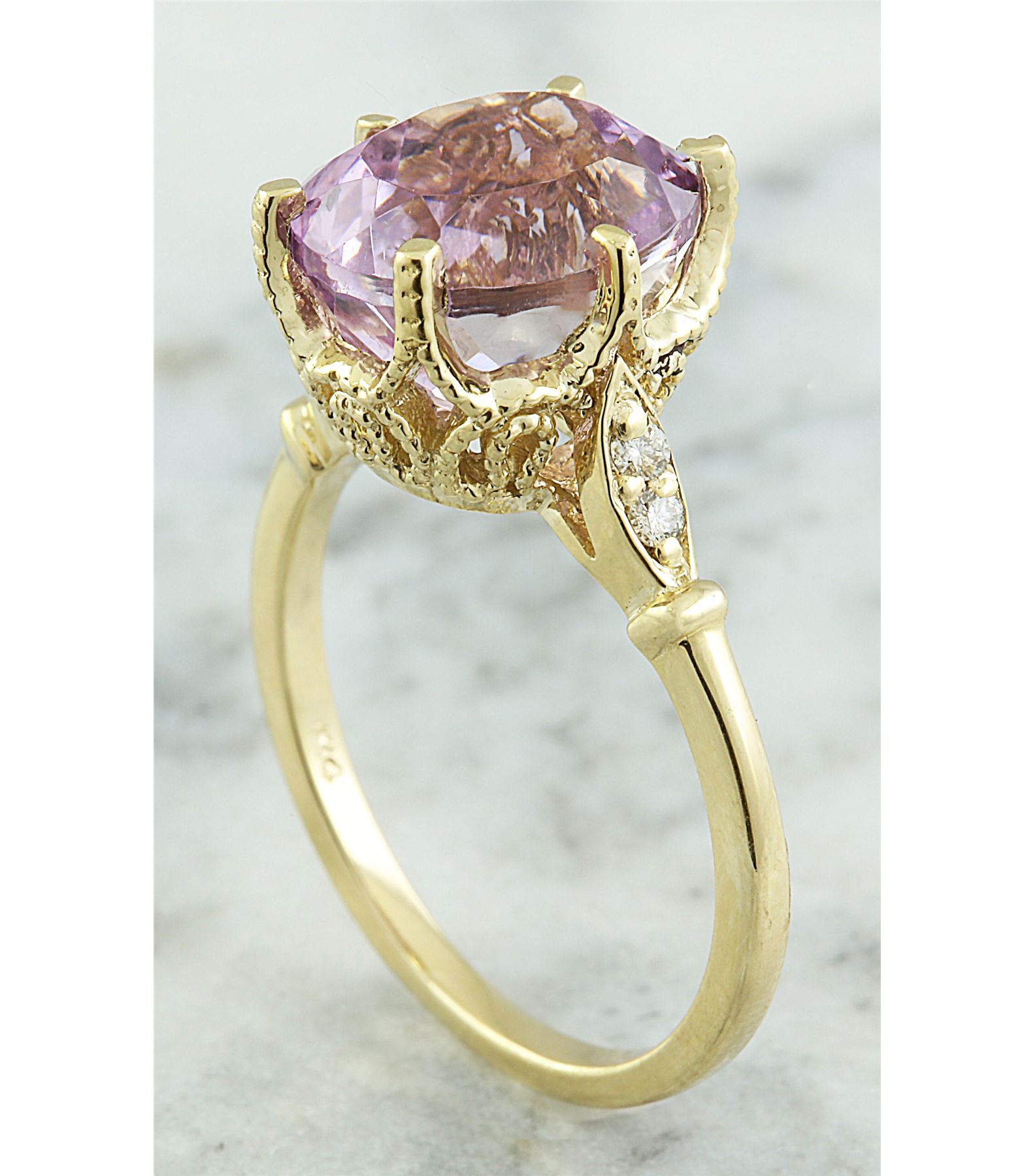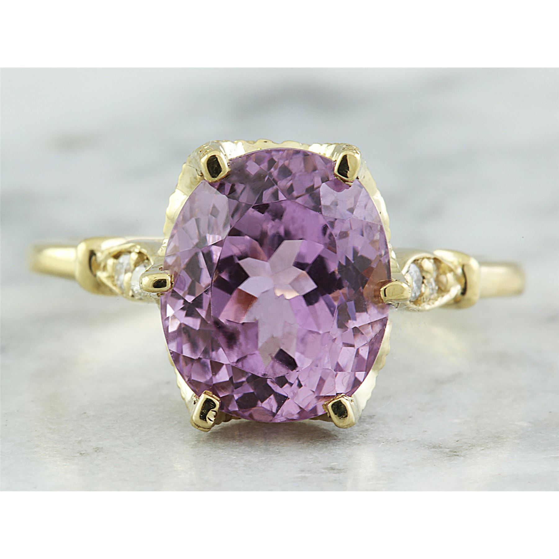 5.41 CTW Kunzite 14K Yellow Gold Diamond Ring
