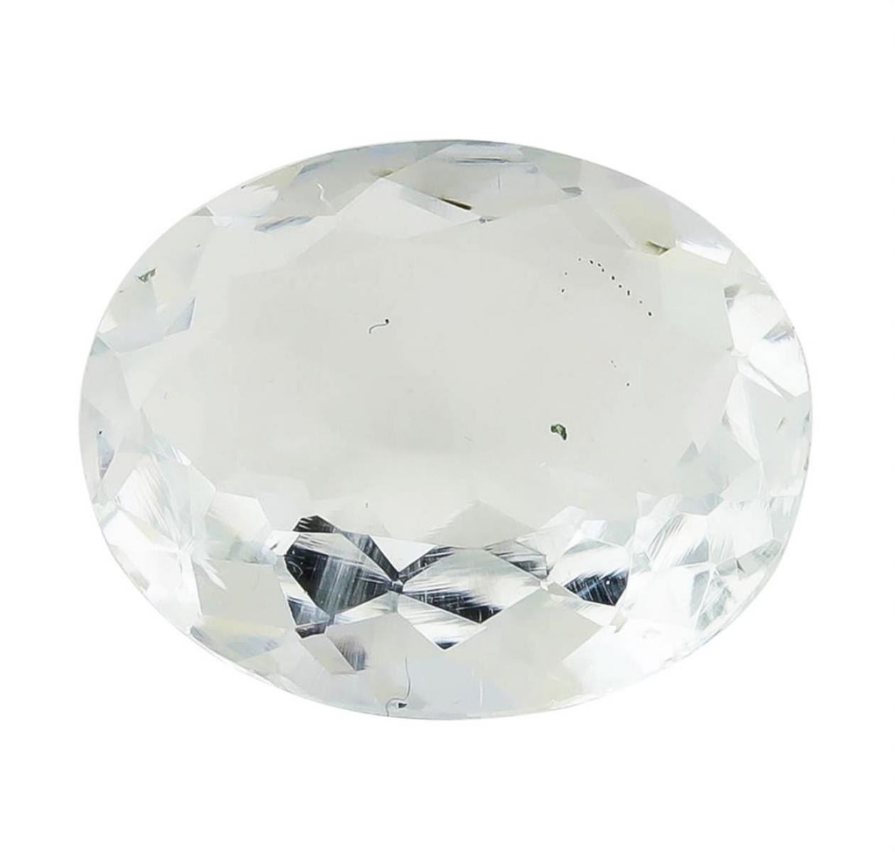 One natural oval cut aquamarine with an exact weight of 5.41ct., clarity is slightly included, slightly grayish greenish blue. Gemological Appraisals Services estimates the retail value at $1893.5 GAS Appraised.