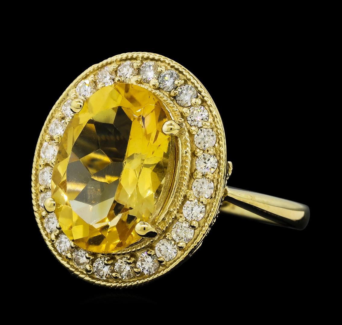 One Citrine Quartz and Diamond Ring including: 14KT Yellow Gold weighing a total of 5.99 grams, Citrine Quartz weighing a total of 5.41ct and 24 Diamonds weighing a total of 0.60ctw.