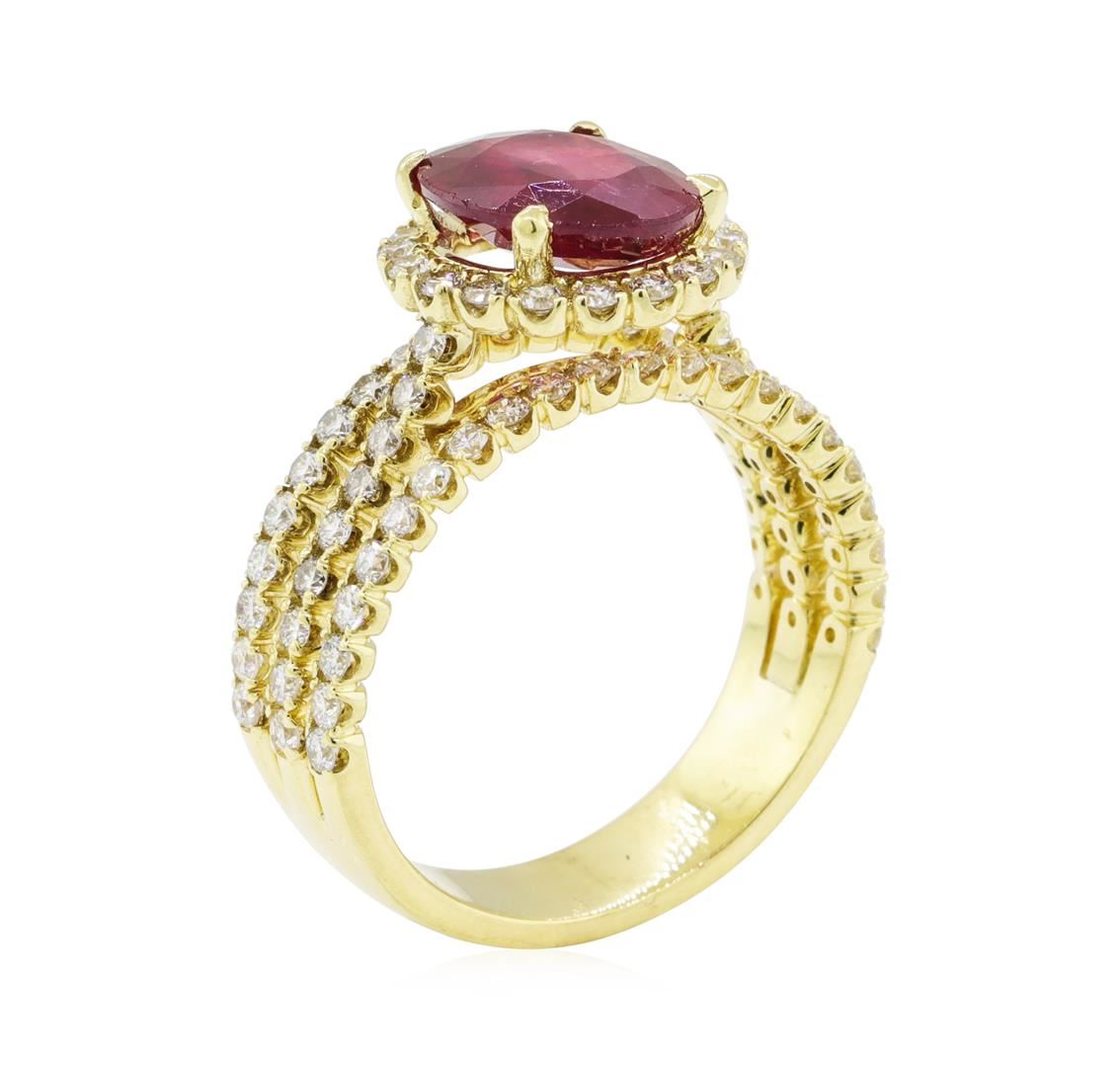 One electronically tested 18KT yellow gold lady's combination cast & assembled fashion ring with a three row split shank with a bright polish finish. The featured lady's ring has a shank measuring 5.30 millimeters wide. Identified with markings of '18K'.