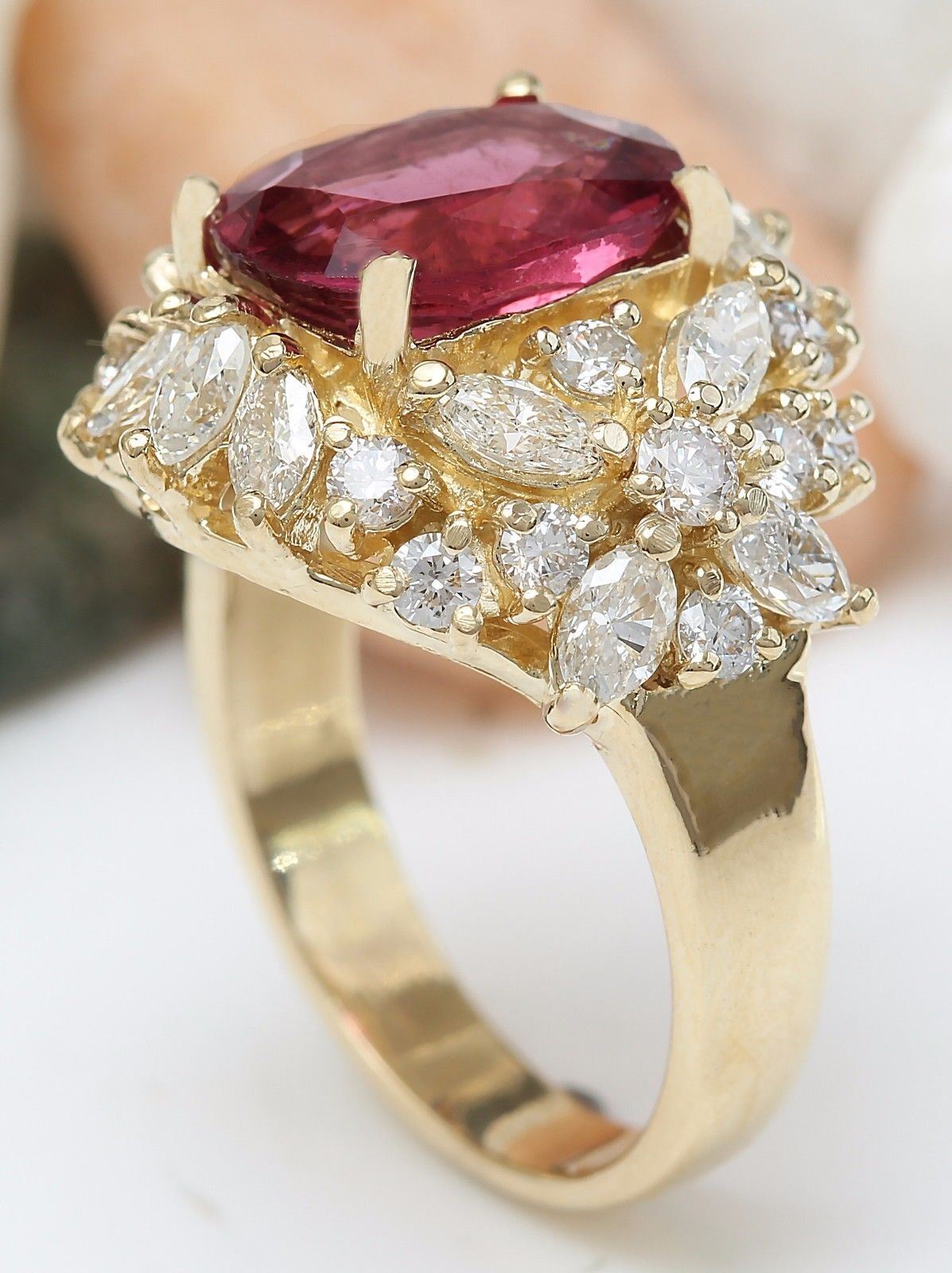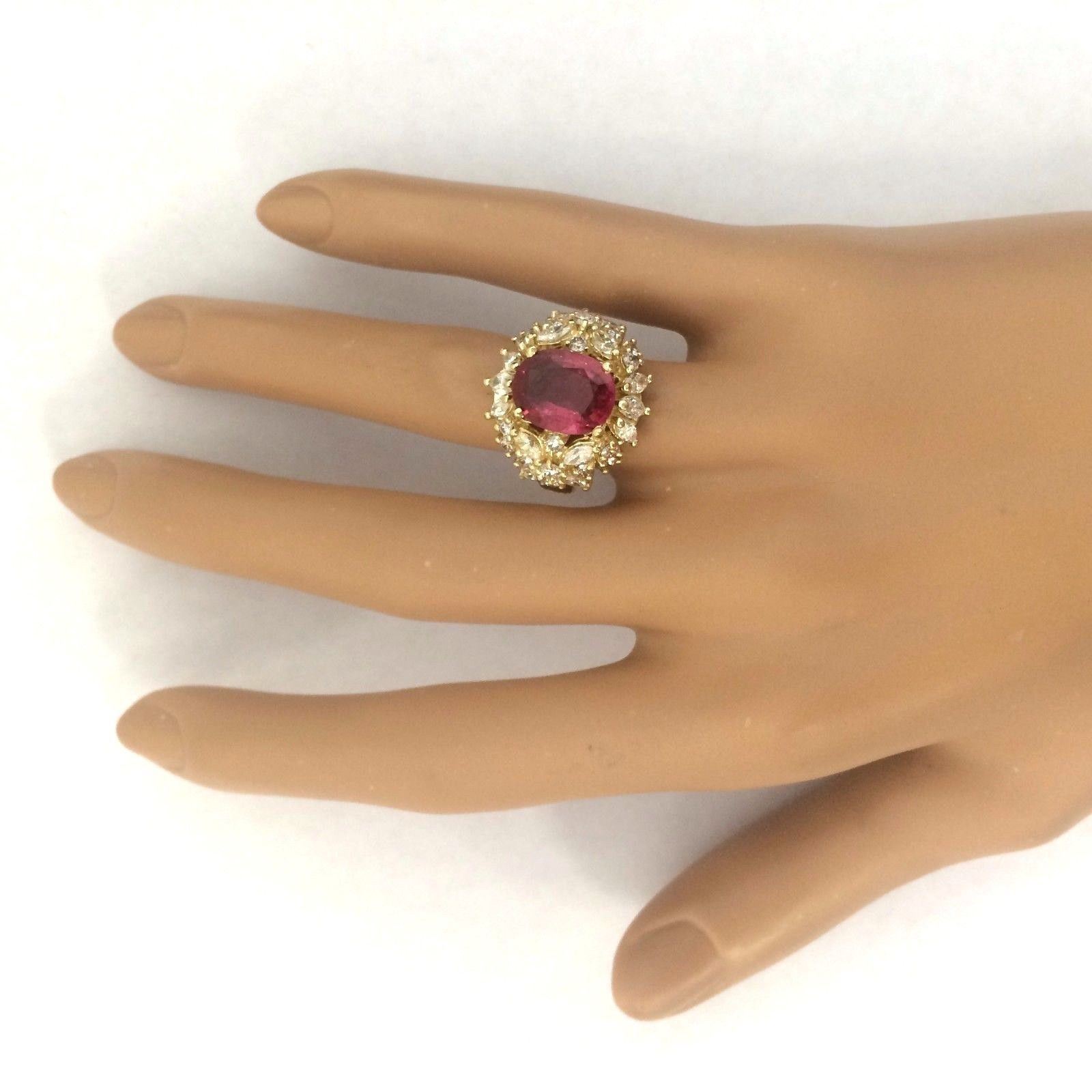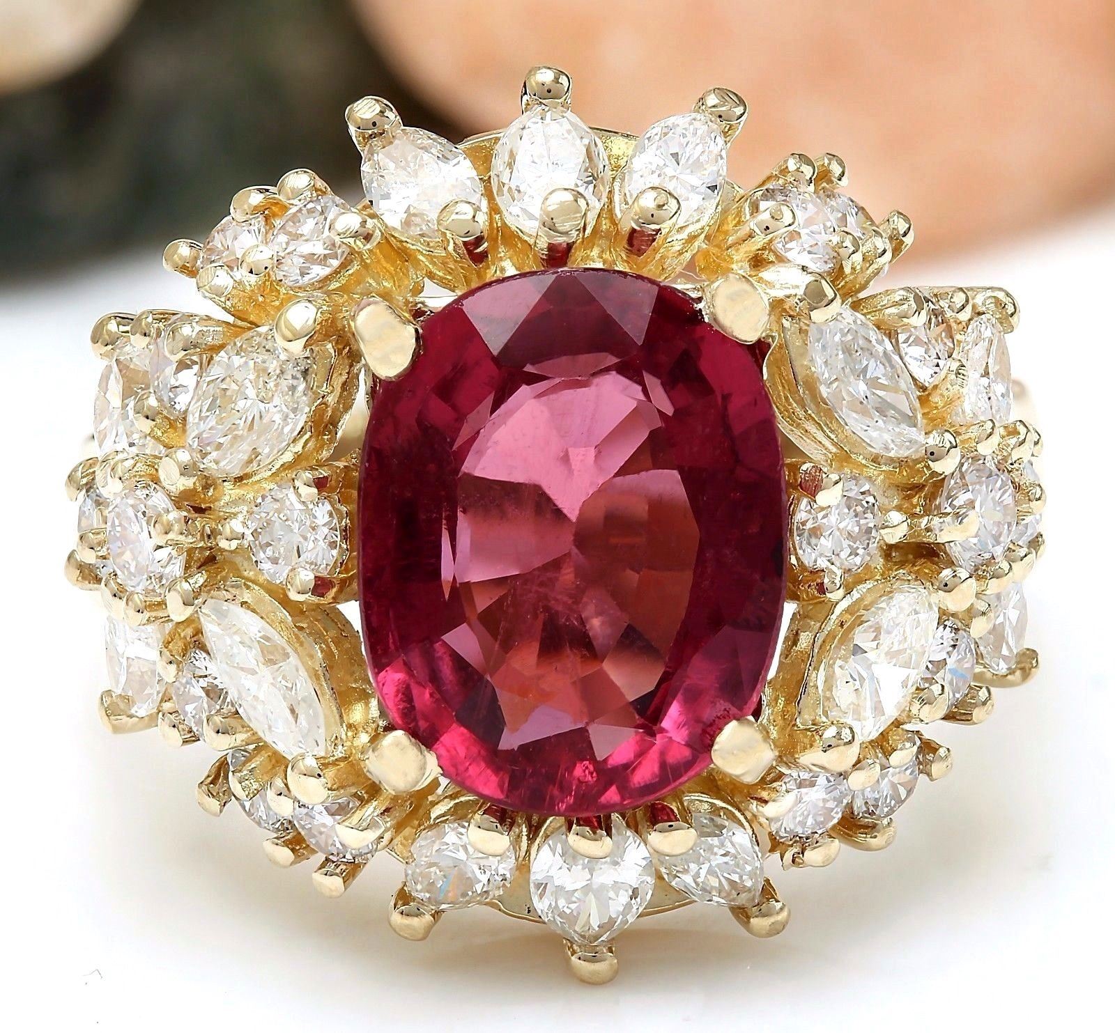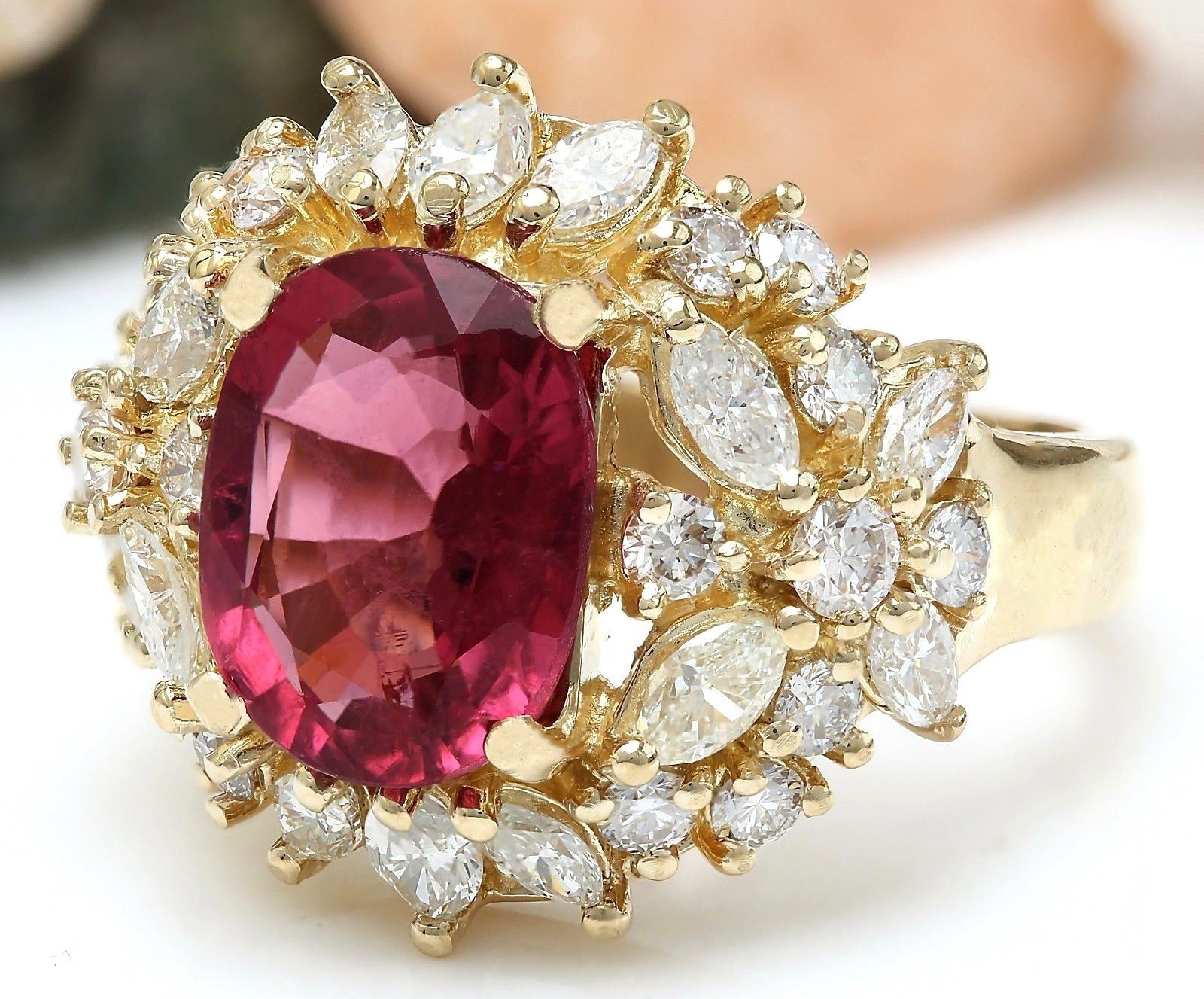5.43 Carat Natural Rubelite 18K Solid Yellow Gold Diamond Ring