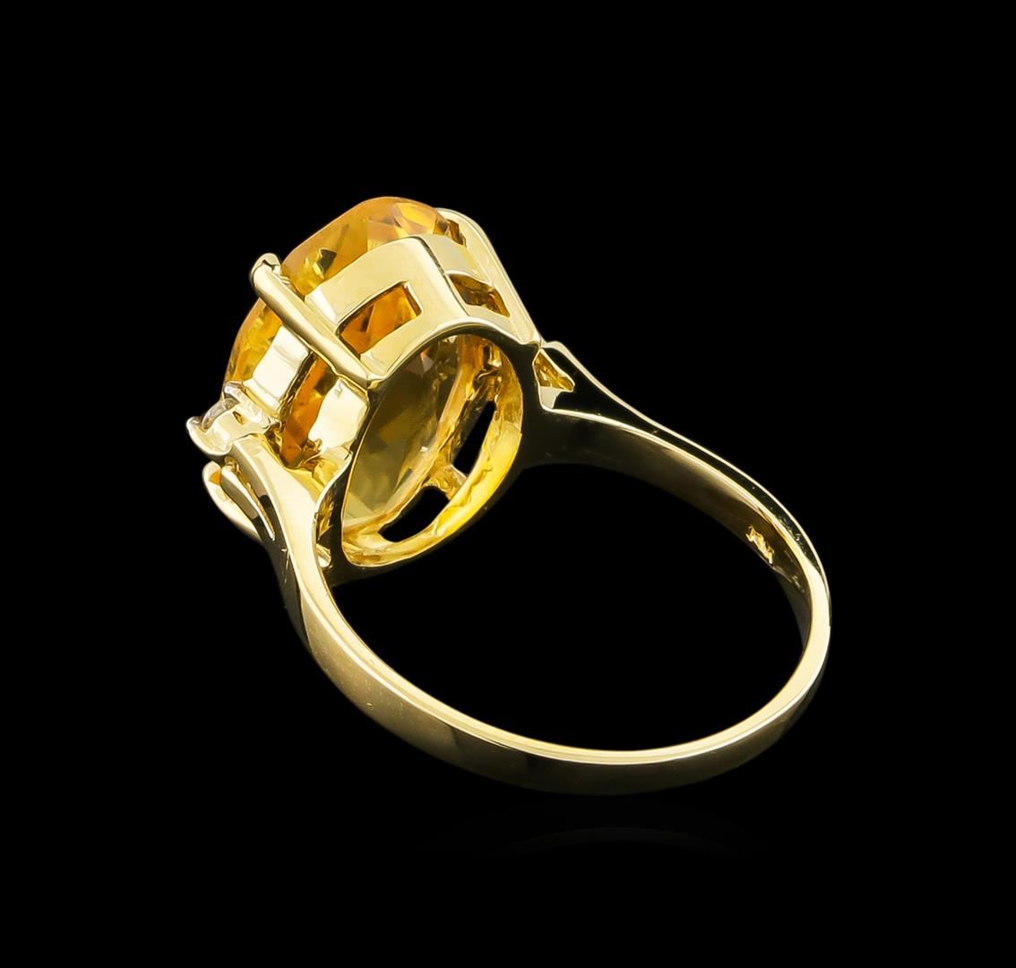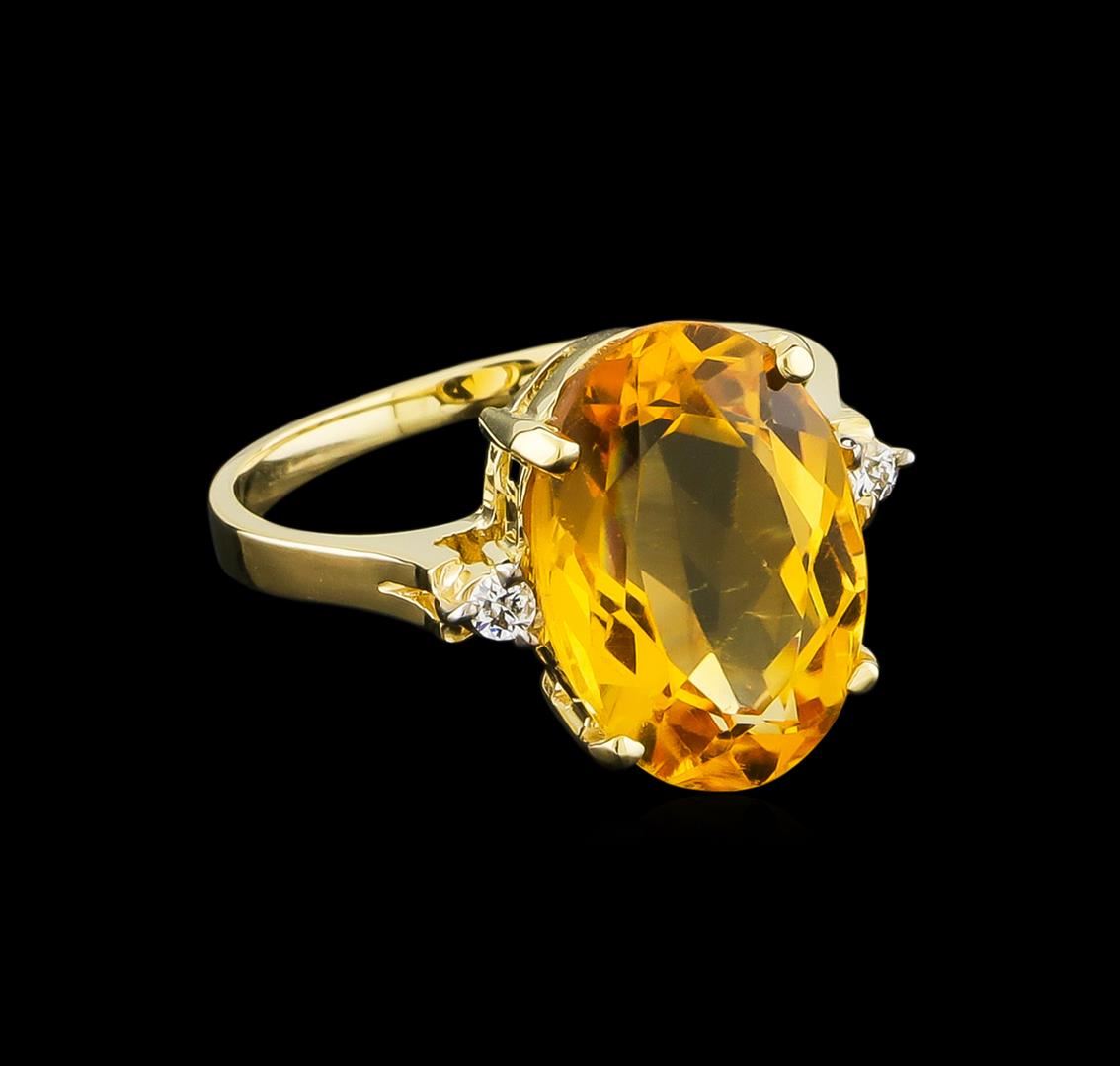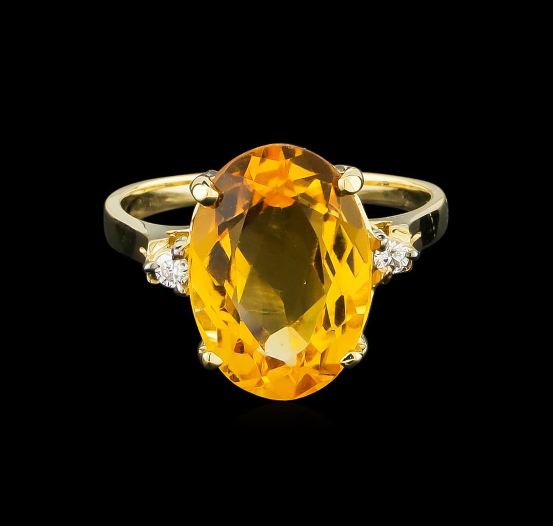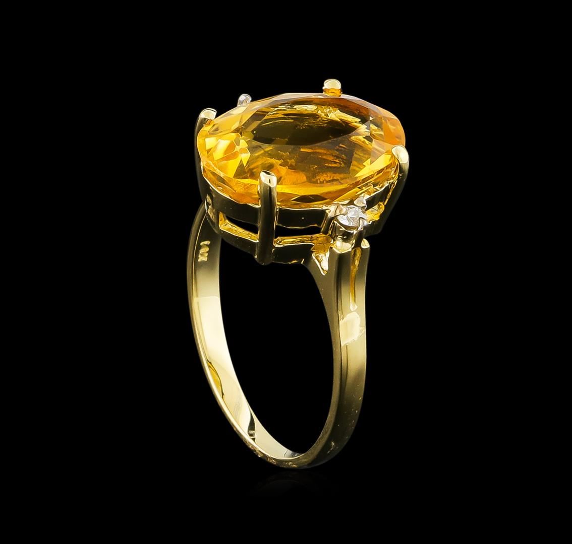 One Ring featuring: 14KT Yellow Gold weighing 2.85 grams containing one Citrine center stone with a total weight of 5.44ct and Diamonds with a total weight of 0.05ct.