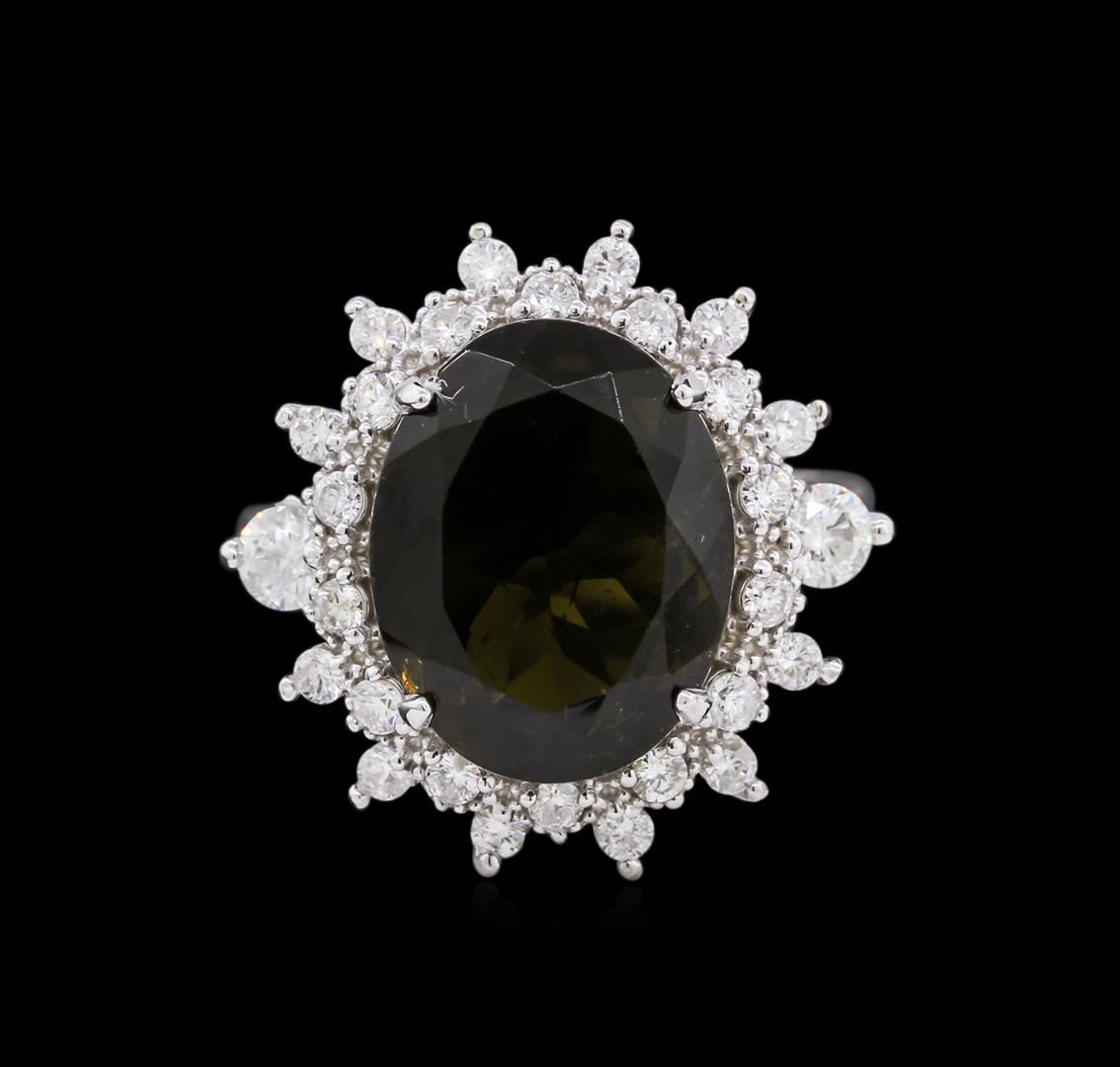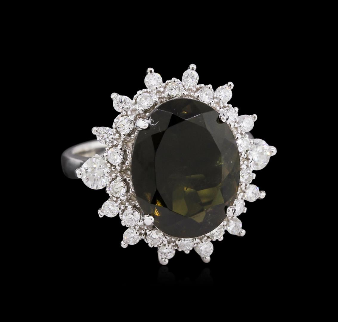 One ring featuring: 14KT white gold weighing 5.30 grams containing one green tourmaline with a total weight of 5.44ct and diamonds with a total weight of 0.75ct.