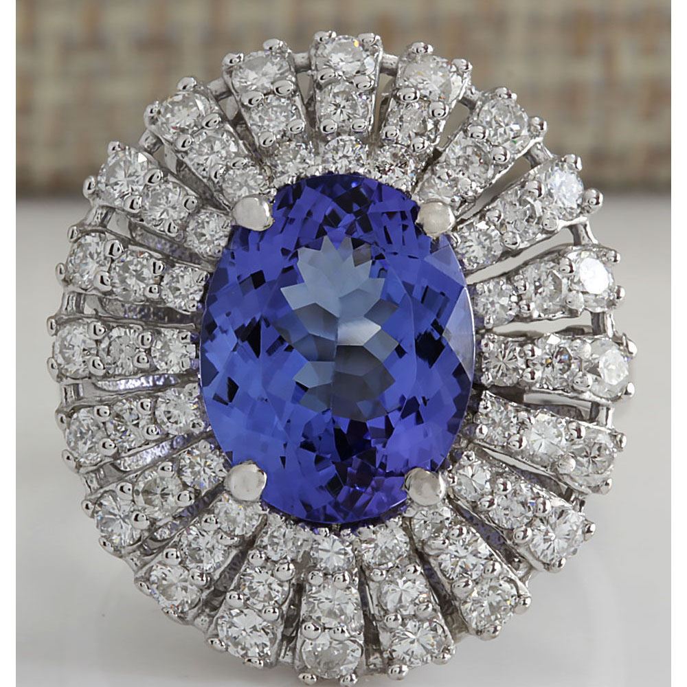 5.45 CTW Natural Blue Tanzanite And Diamond Ring In 18K Solid White Gold