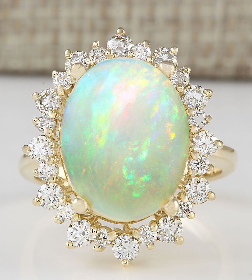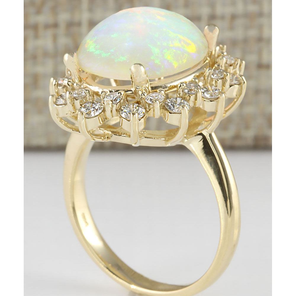 5.45 CTW Natural Opal And Diamond Ring In 18K Yellow Gold